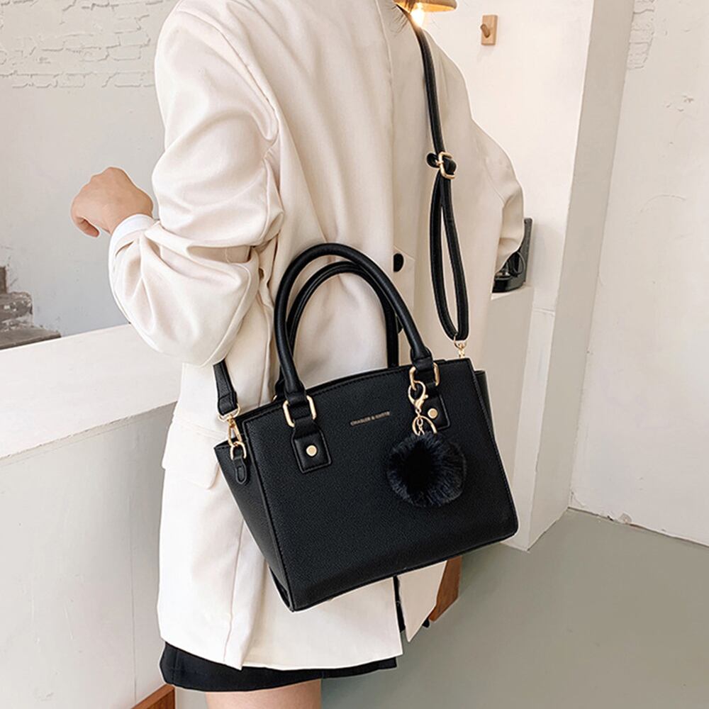 斜めがけバッグ ファーチャーム付き ミニハンドバッグ オフィス トートバッグ