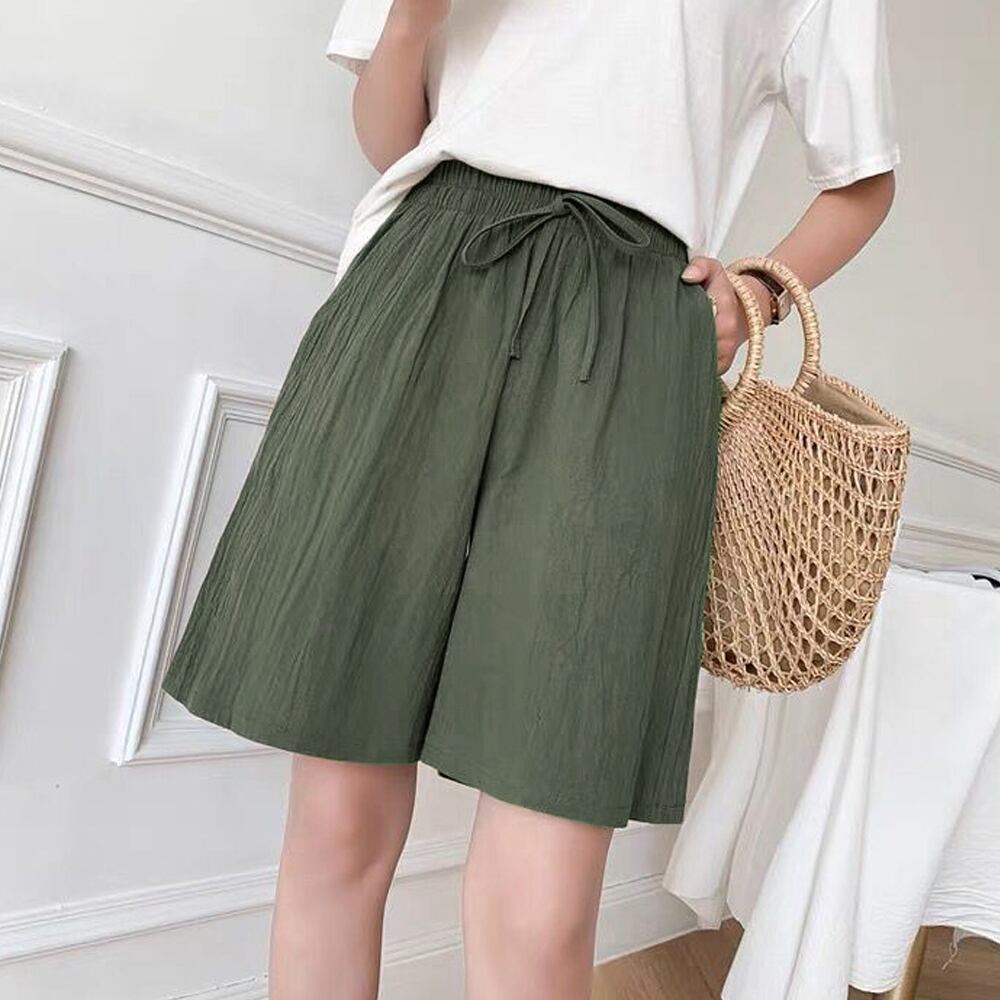 リネン ワイドパンツ 短パン 綿麻 半ズボン
