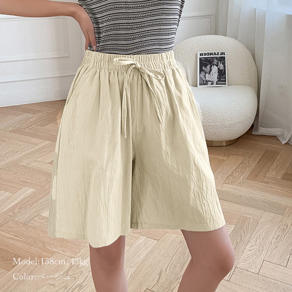 ショートパンツ ハーフパンツ 薄手 ウエストゴム ゆったり 楽ちん ボトムス ショーパン 無地 綿麻 パンツ 着やせ ボトムス