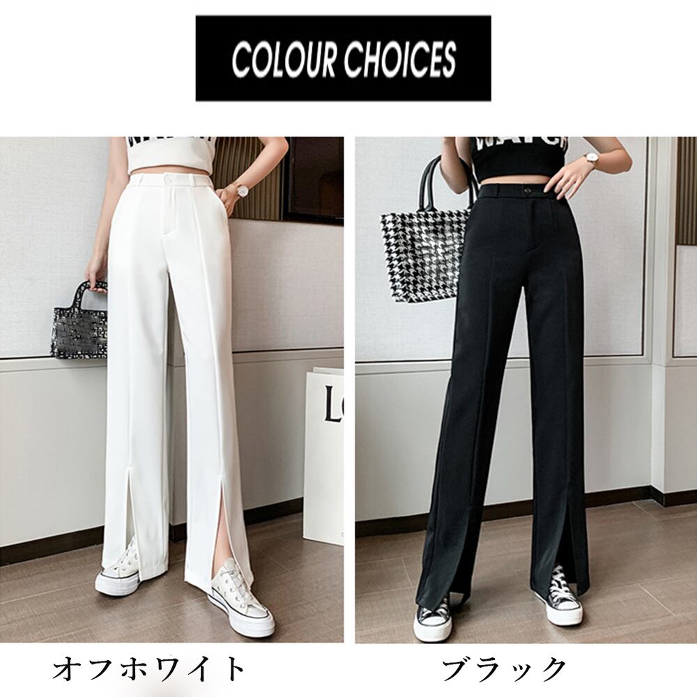 ハイウエスト レディース カジュアルパンツ スーツ素材 ボトムス ウエストバックゴム ストレート パンツ 無地 女性 パンツ 着やせ ズボン