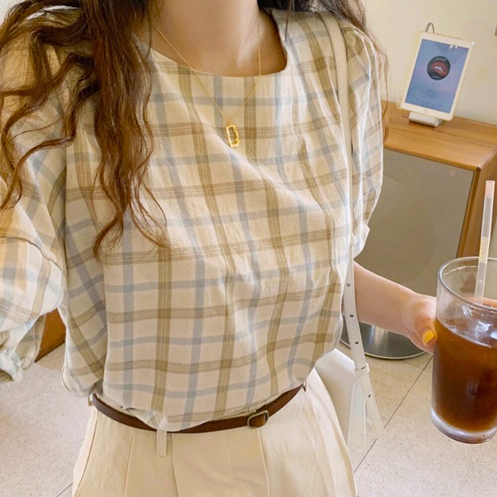 小柄のチェック柄がこれからの季節にぴったりのブラウス