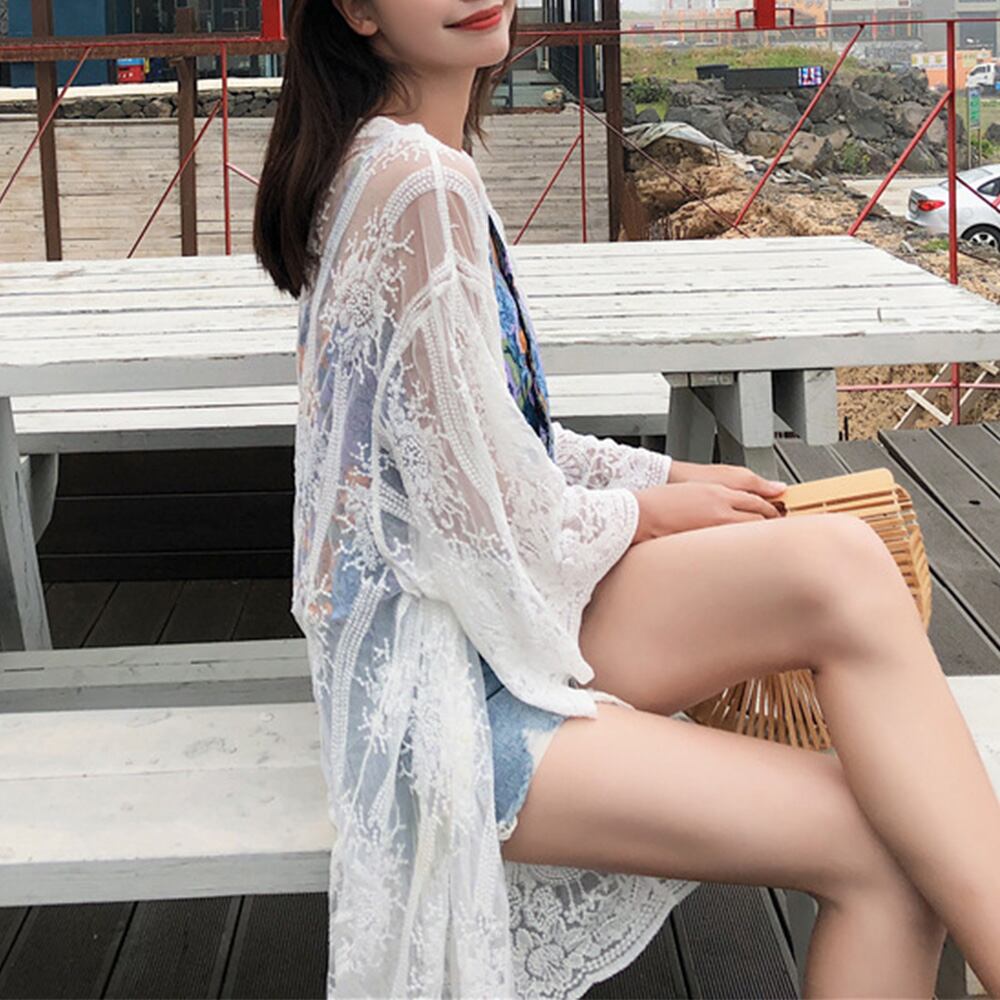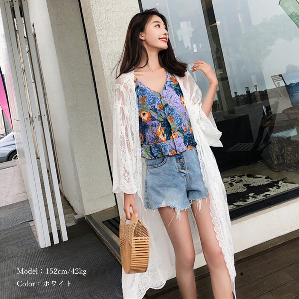 透かし編み ビーチカーディガン レーストップス 薄手春夏ロングシャツブラウス ゆったり UV対策 おしゃれ ビーチウエア着やせ リゾート羽織 夏 カーディ 冷房対策