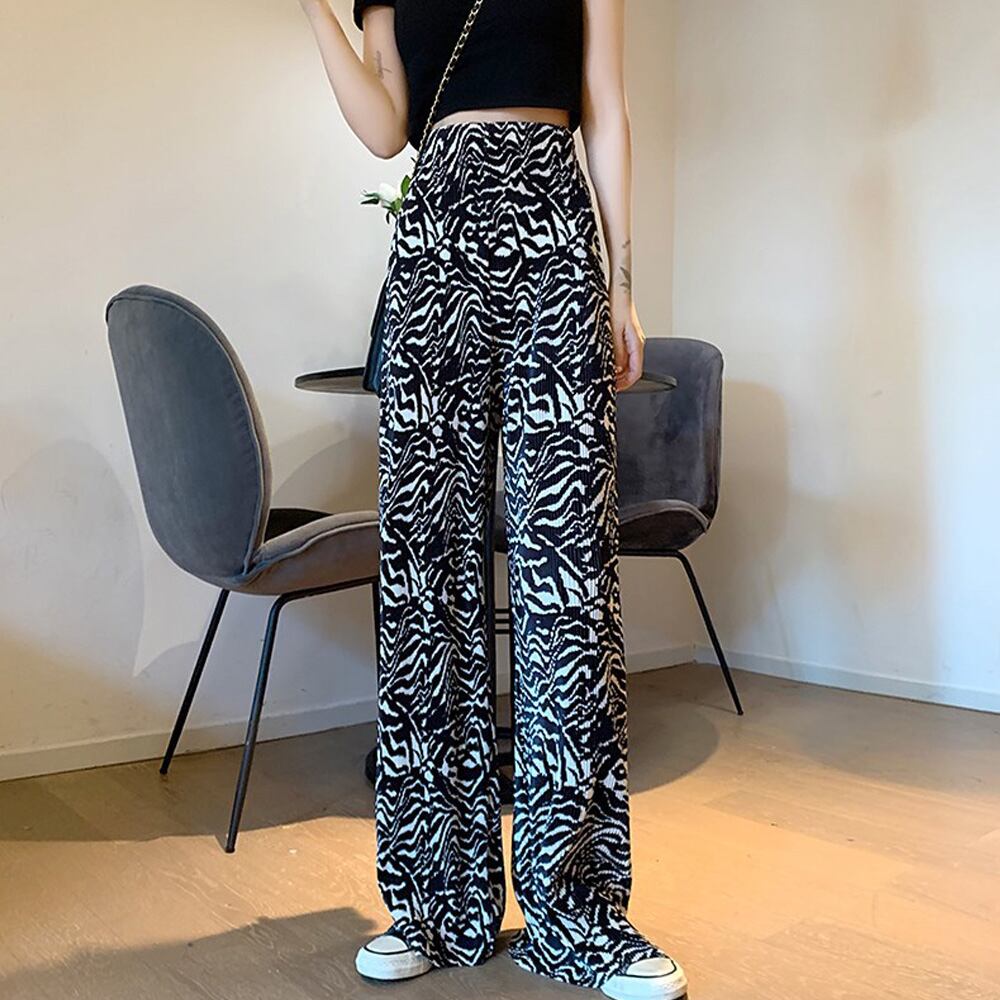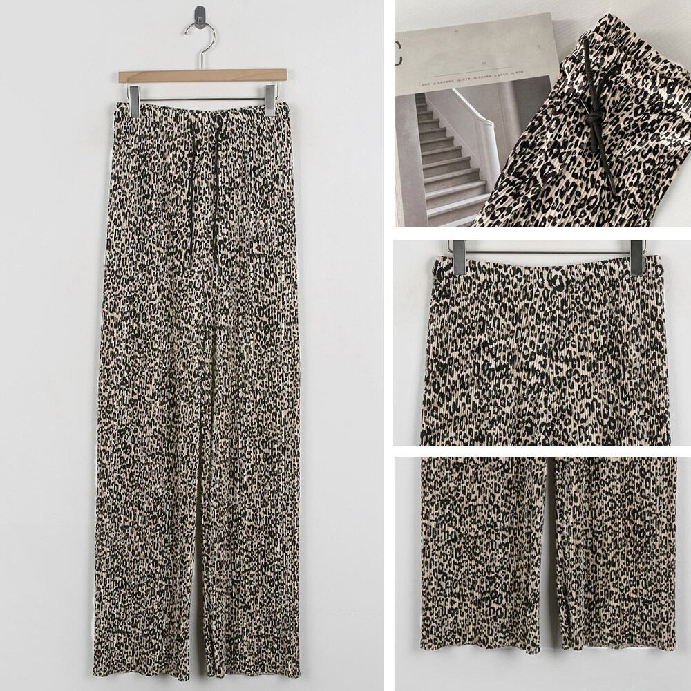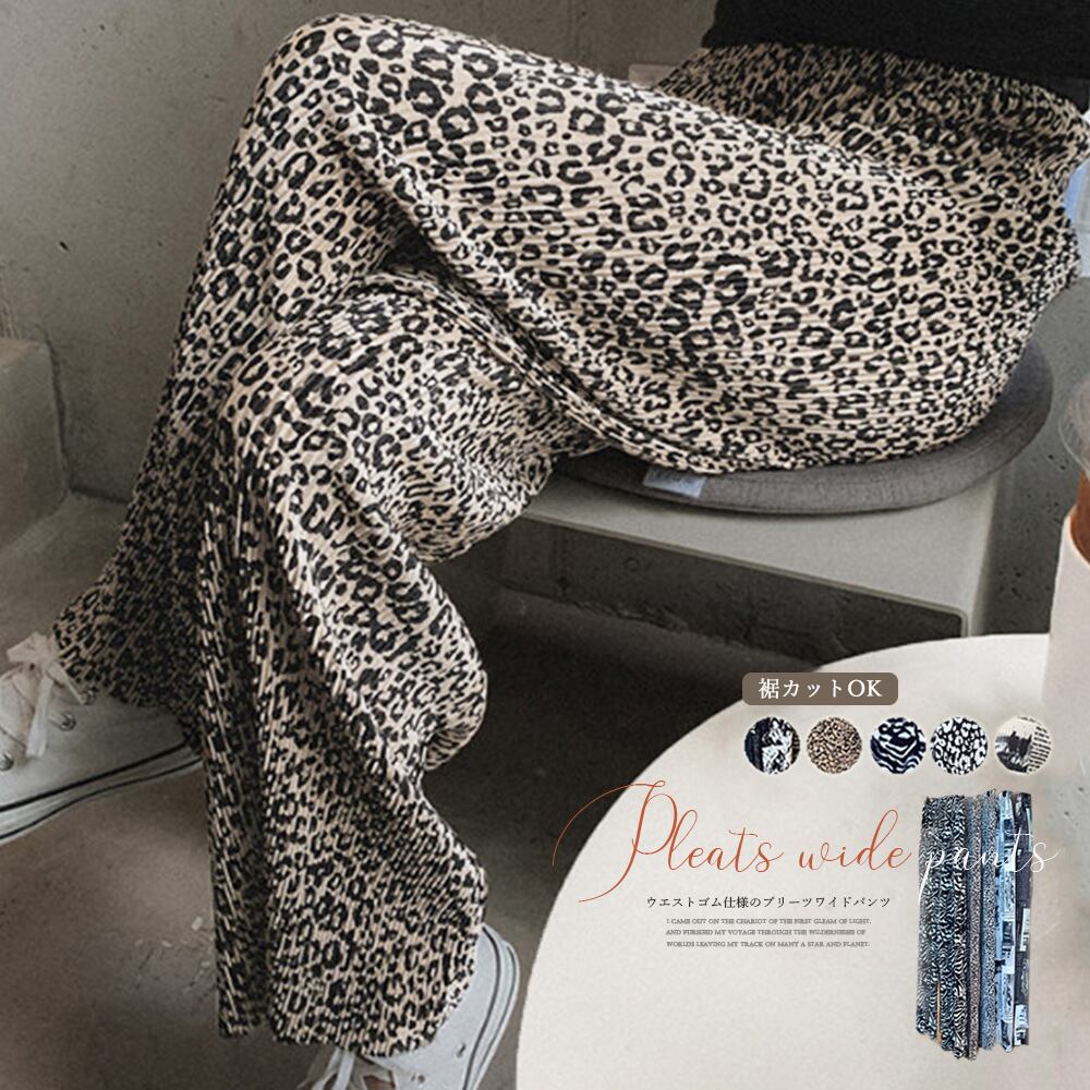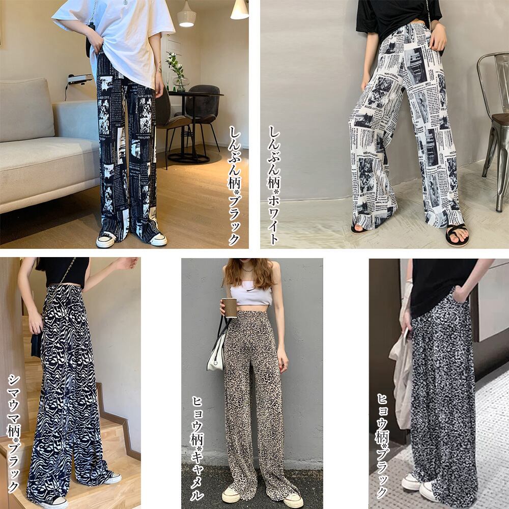ハイウエスト ストレートパンツ カジュアル ロングパンツ ウエストゴム リラックスパンツ 着やせヒョウ柄パンツ体型カバー
