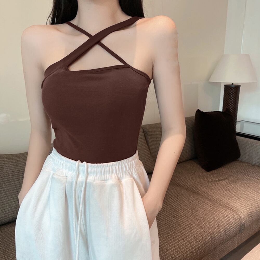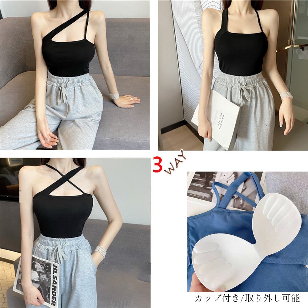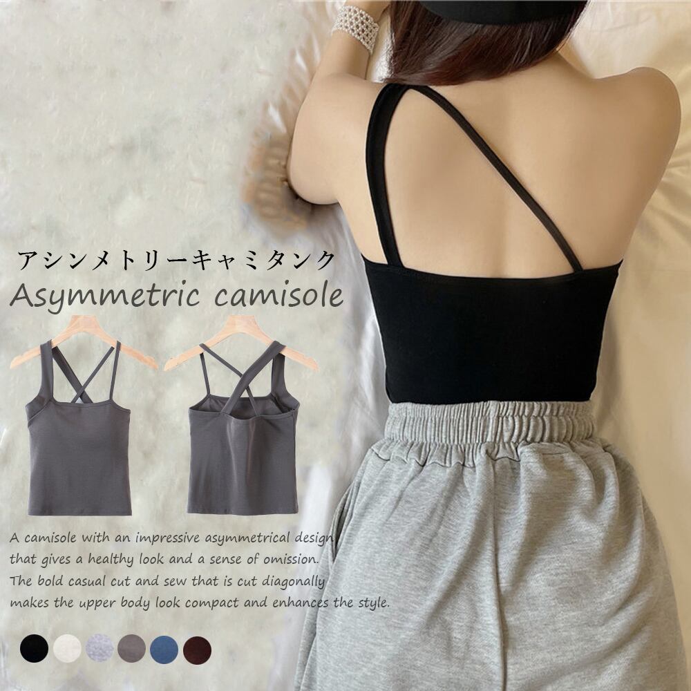 ヘルシーな肌見せで抜け感のあるアシンメトリーなデザインが印象的なキャミタンク