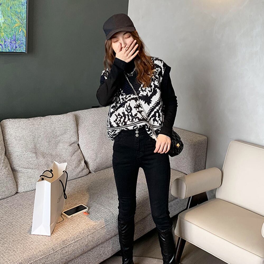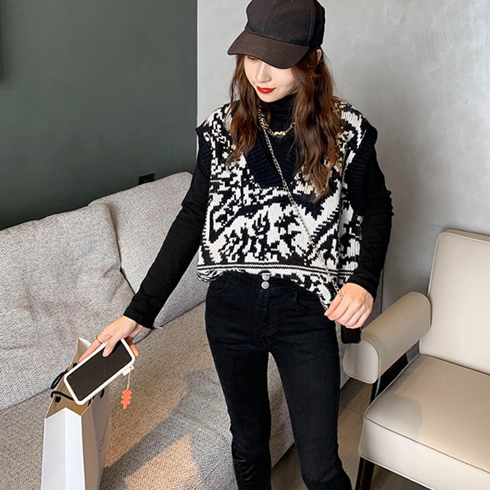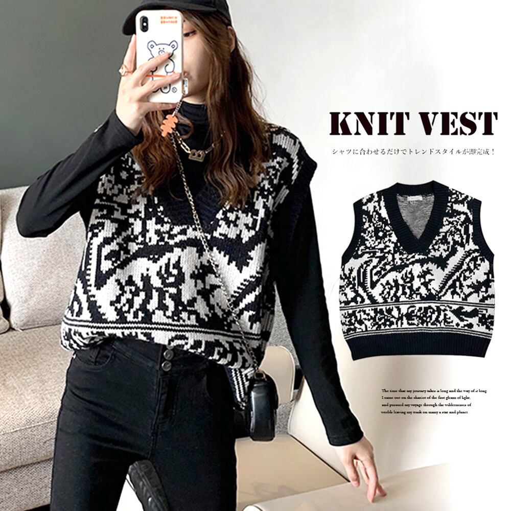コーデが映える、トレンドな柄ニットベスト。