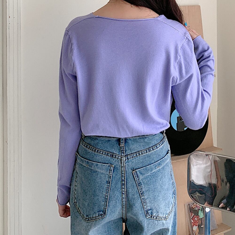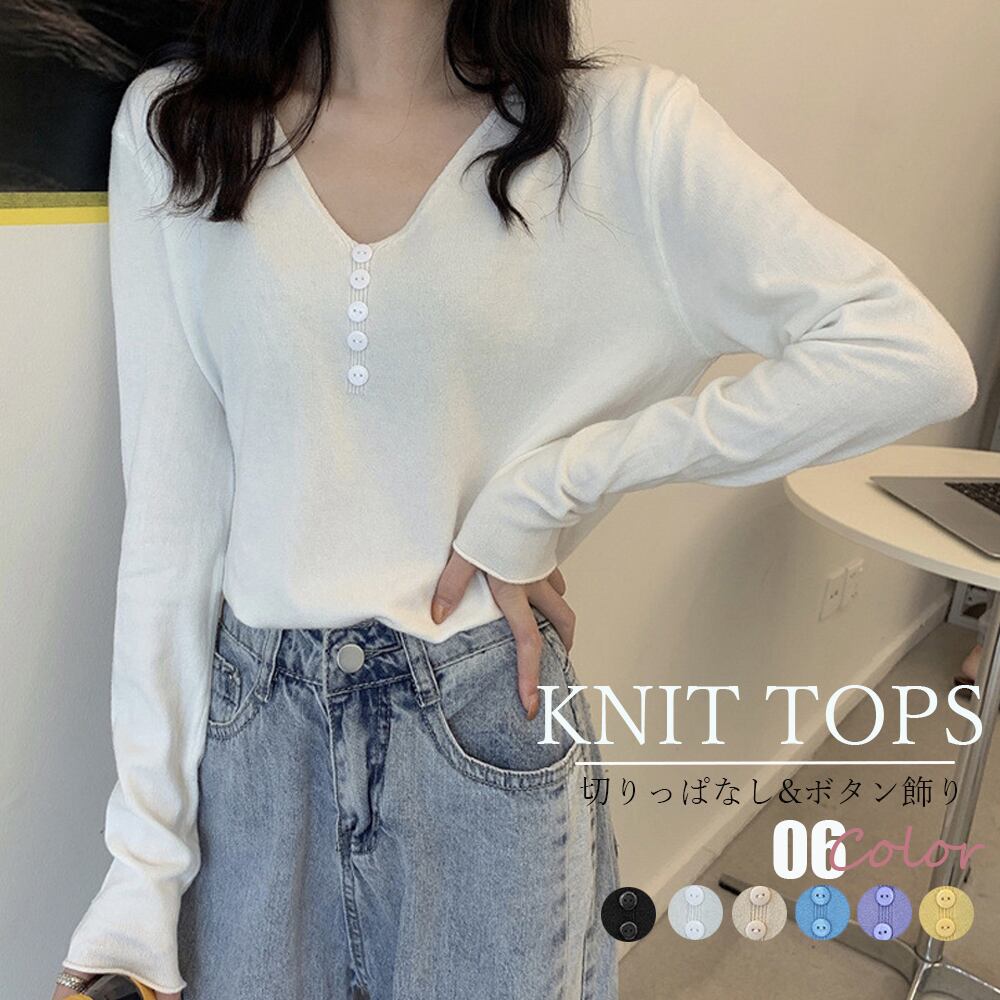 切りっぱなし ニットセーター カジュアル 長袖 ニットソー ボタン飾り 着やせニット きれいめ 秋冬 無地
