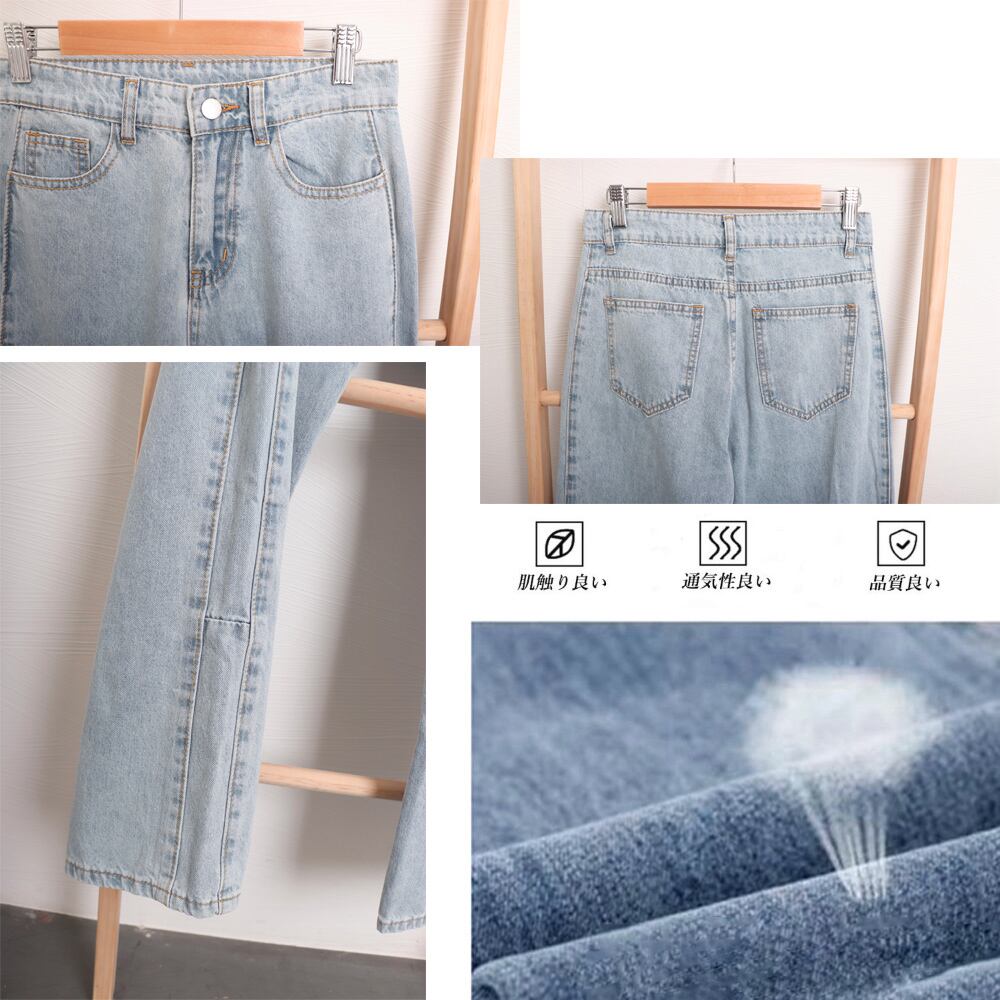韓国風 レディース セミワイドパンツ カジュアル ジーンズ 着やせ オルチャン ストリート ボトムス お洒落 春秋夏