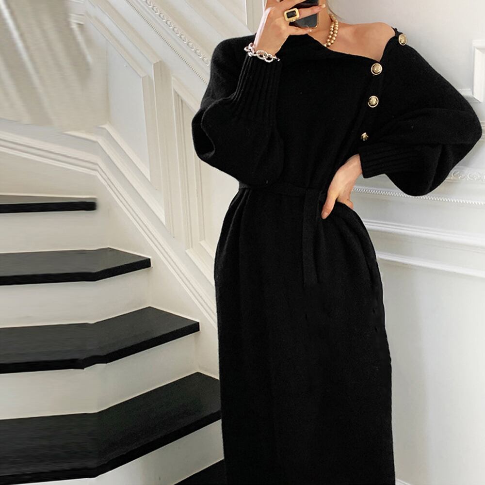 ワンピース 韓国 カットソー ワンピ ロングニット 上品