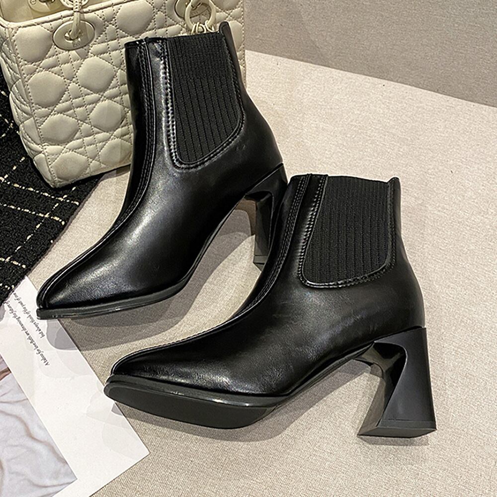 レディースブーツ サイドゴアブーツ 太ヒール 美脚 ハイヒール 合皮 歩きやすい ショート丈 秋冬 ニット靴