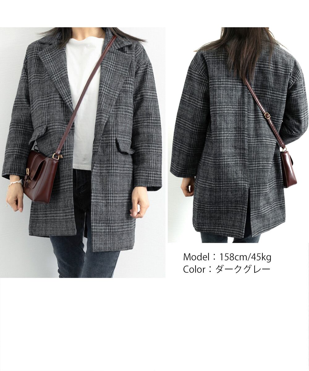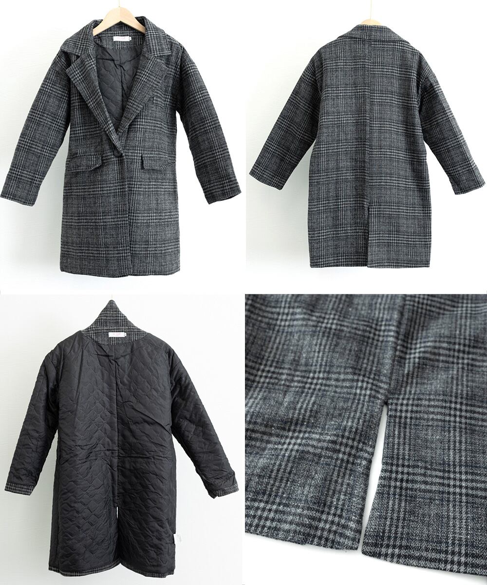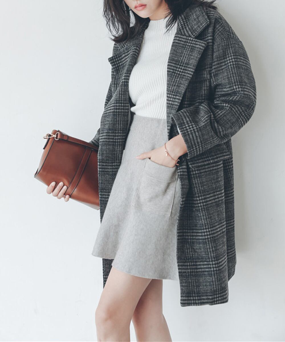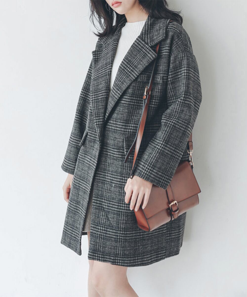 シーズンライクなグレンチェックを取り入れてこなれ感を演出、ワンランク上のアクセントが効いたお洒落なミディアム丈コート