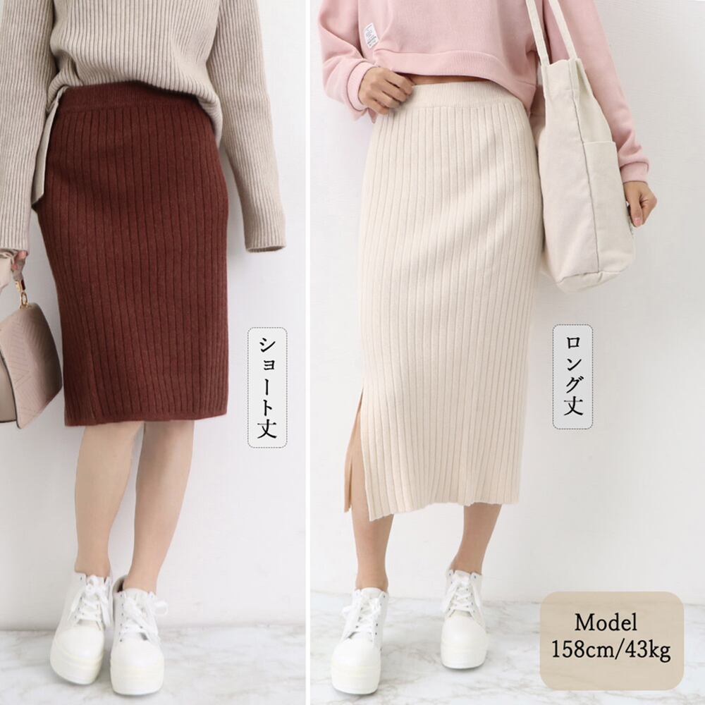 無地ニットスカート ストレッチスカート 韓国ファッション