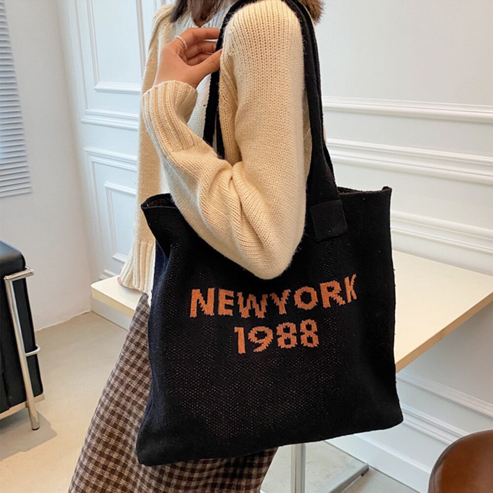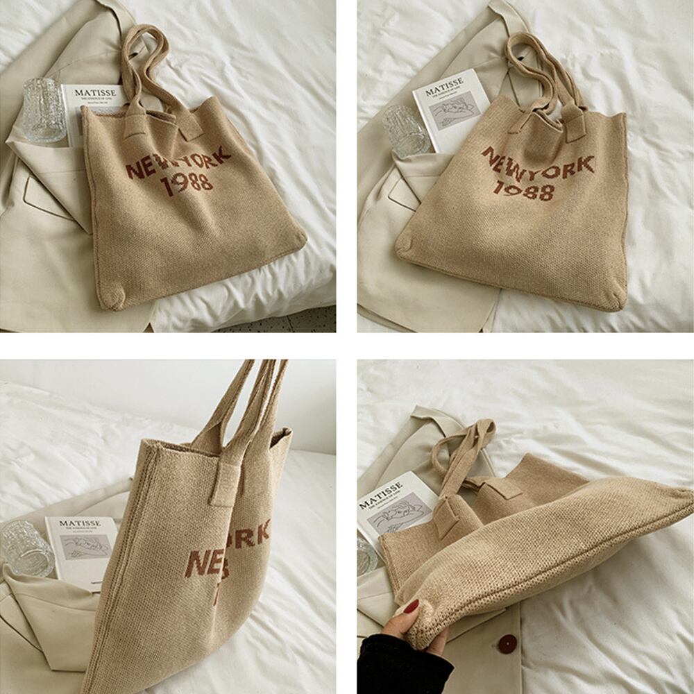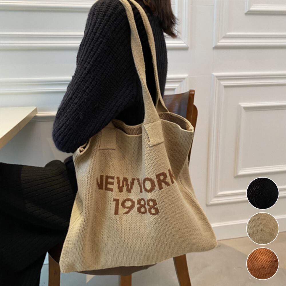 おしゃれ ロゴ 編みバッグ 軽量 シンプル 肩掛けカバン 大容量 可愛い 手提げかばん オルチャン