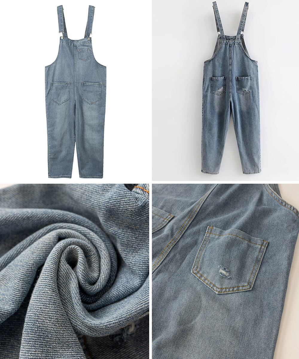 サロペット デニムパンツ レディース ジーンズ ダメージ オーバーオール オールインワン コンビ
