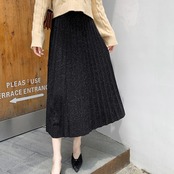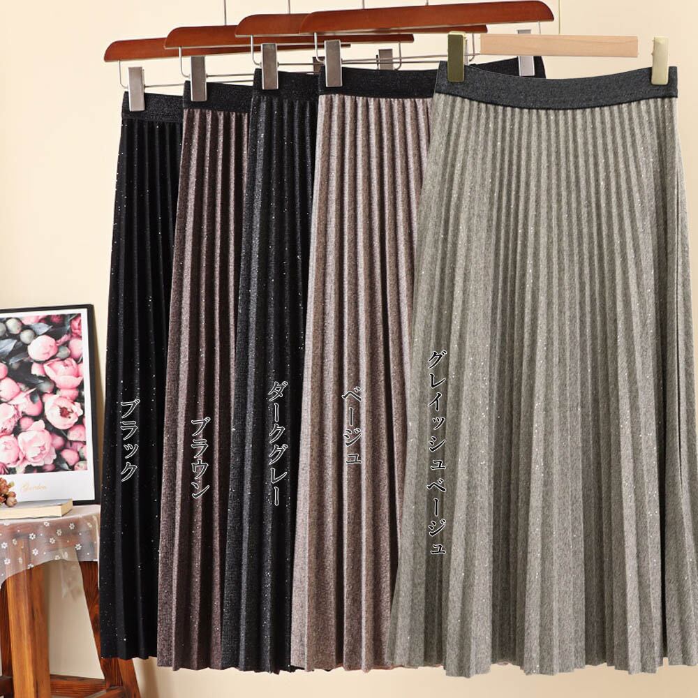 プリーツスカート レディース ウエストゴム ミディアム丈スカート ラメ入り aラインスカート