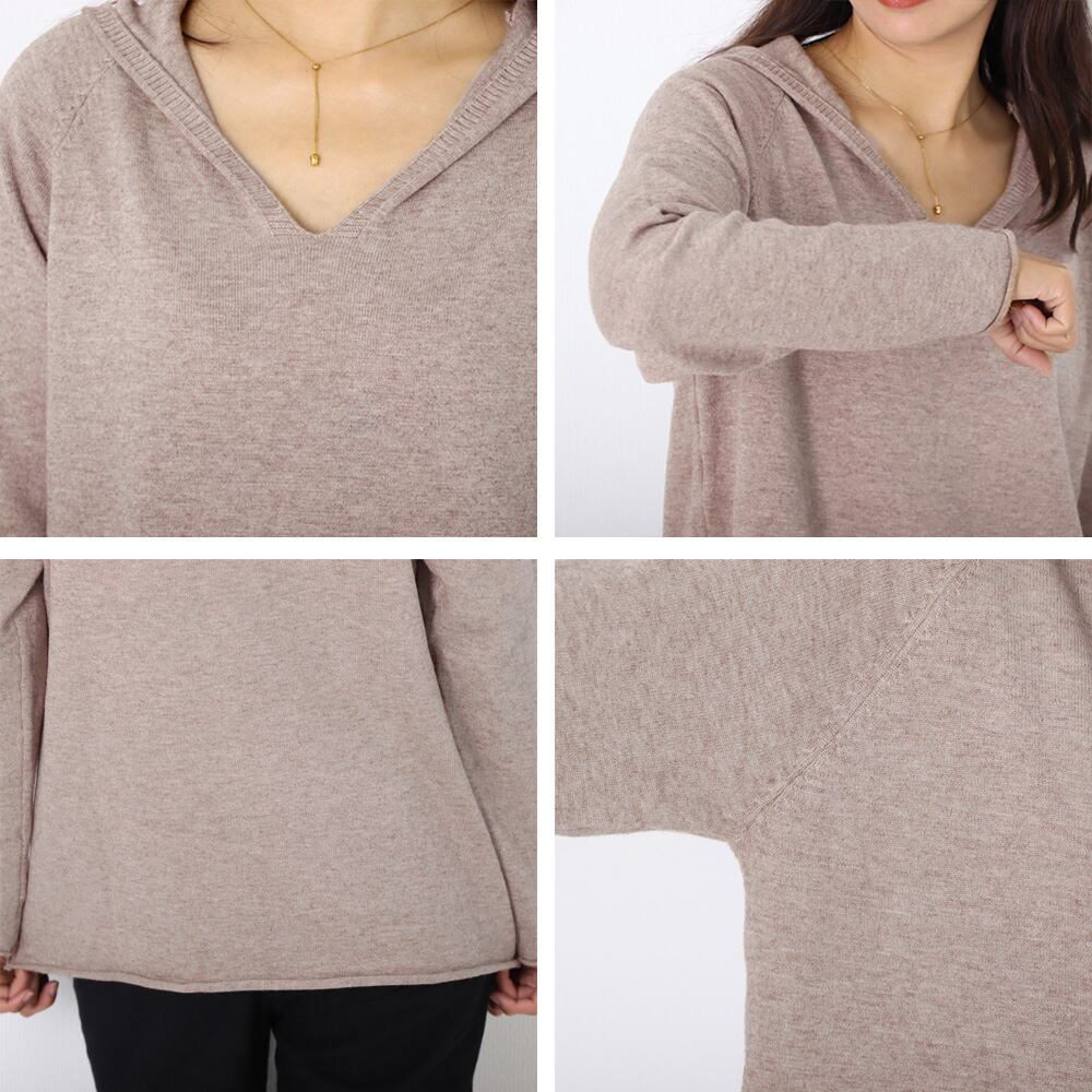 フード付き ニットトップス レディース