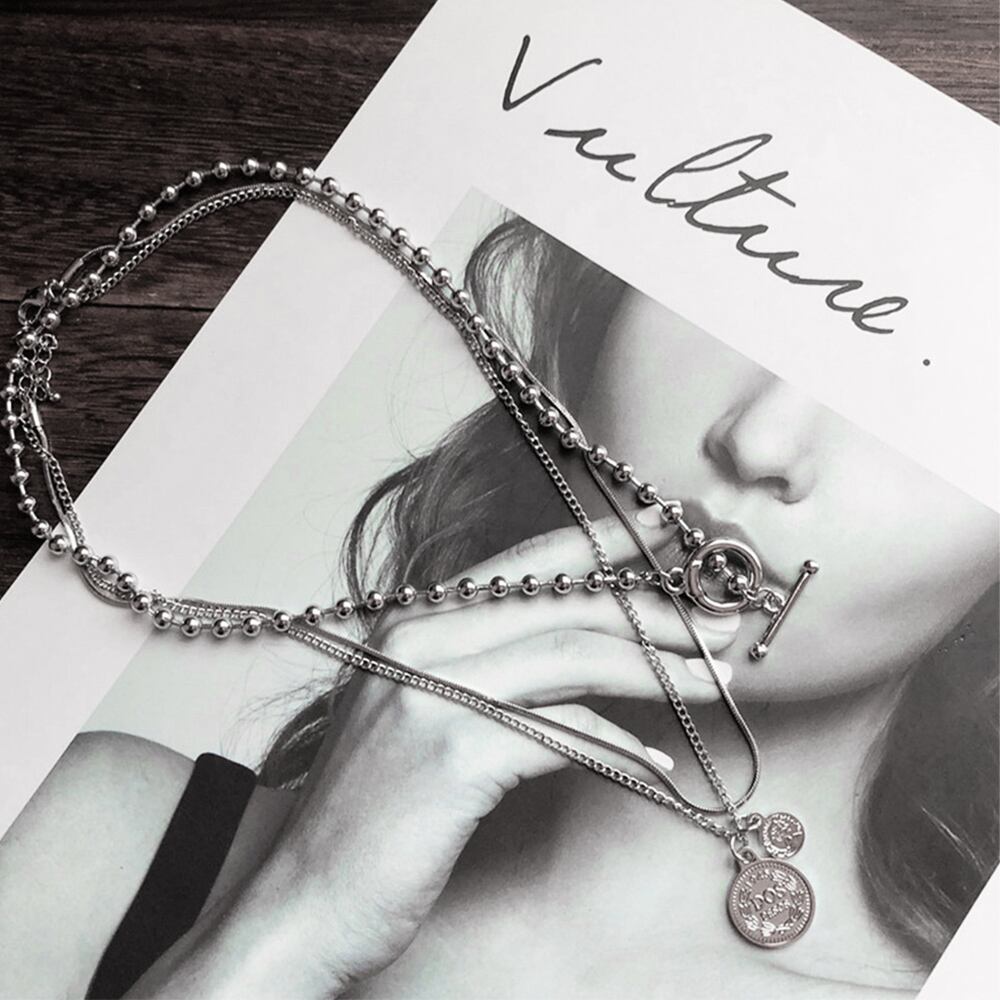 3WAY チェーンネックレス ペンダント 重ね付けネックレス シルバー おしゃれアクセサリー ストリート カジュアル小物