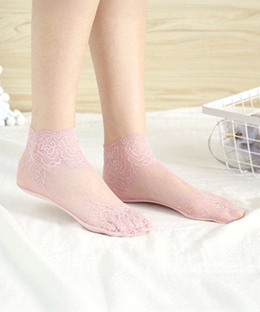 レースソックス レディース シースルー 花柄 脱げにくい 靴下 通気性 エレガント ショート丈 オシャレ
