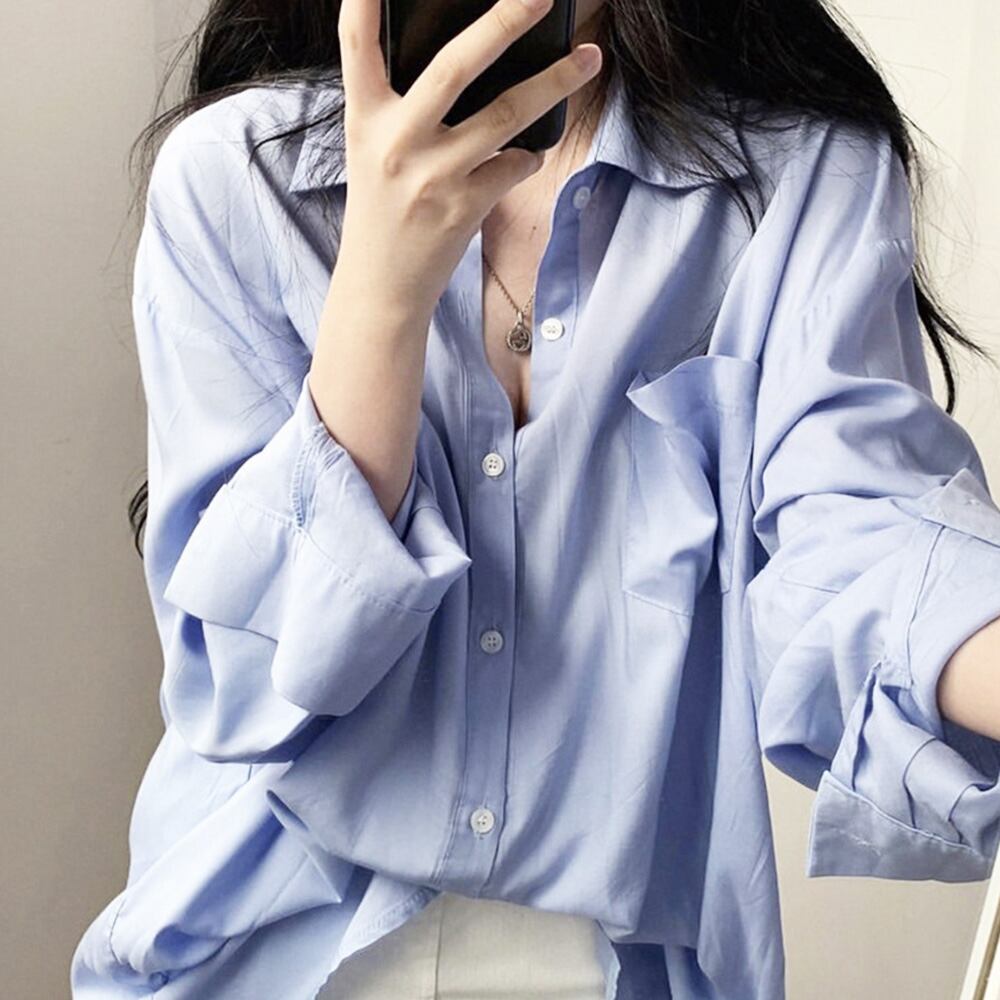 春 ワイドシャツ カーディガン シャツブラウス 胸ポケット付き オーバー ボタン ゆったり シルエット