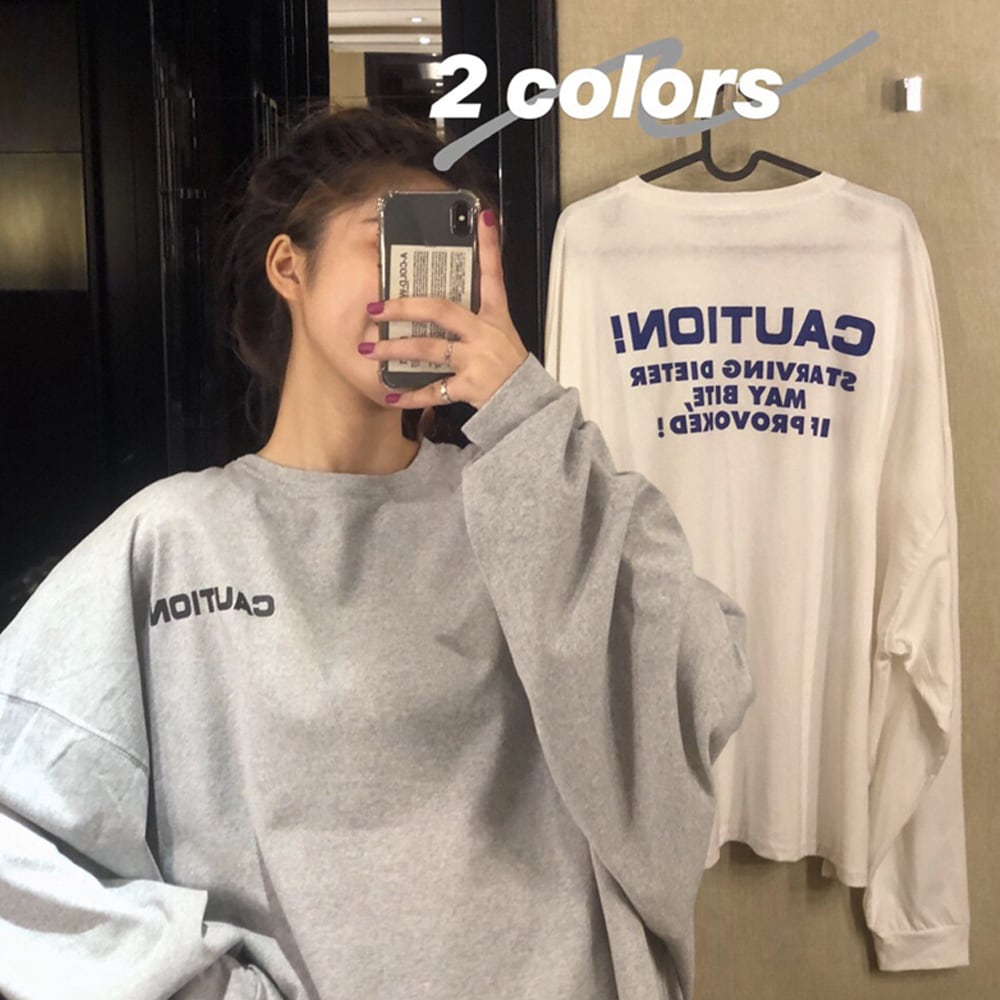 Tシャツ レディース 長袖 カットソー おしゃれ ロゴ オーバーサイズ 大きいサイズ ゆったりTシャツ