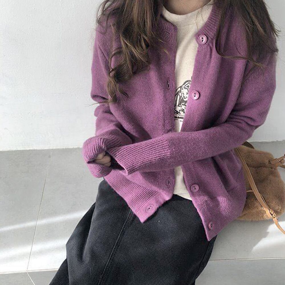 ニットセーター トップス秋 人気 カーディガン黒秋冬