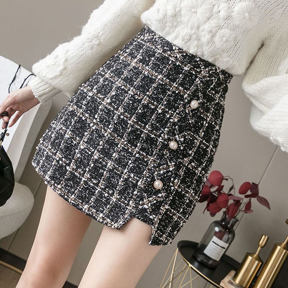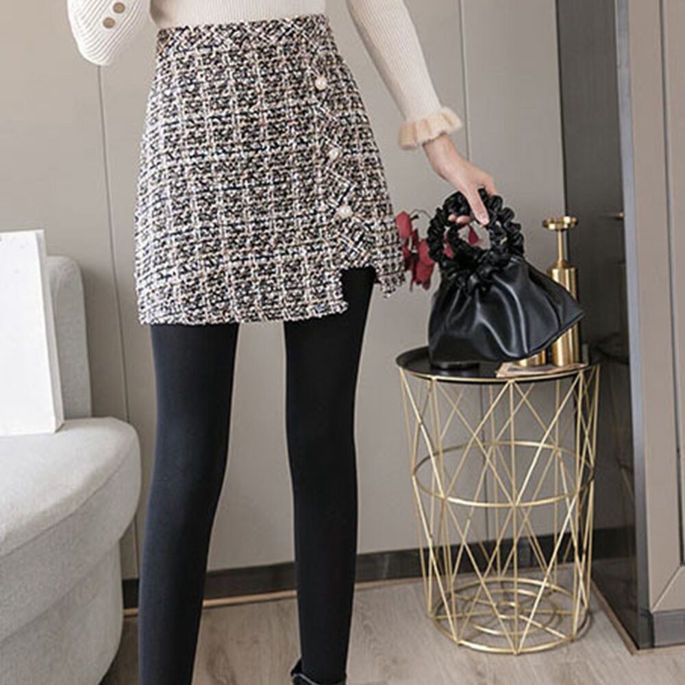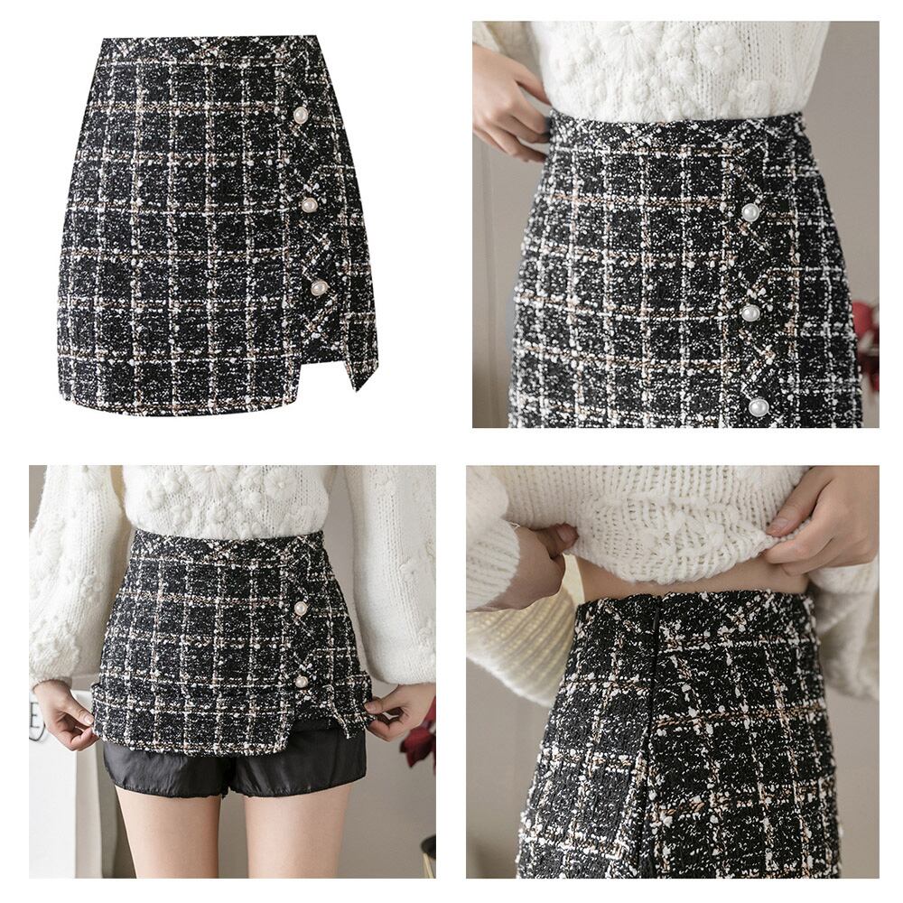 まるでスカートのように見えるシルエットで、実は大人可愛いショートツイード丈スカート