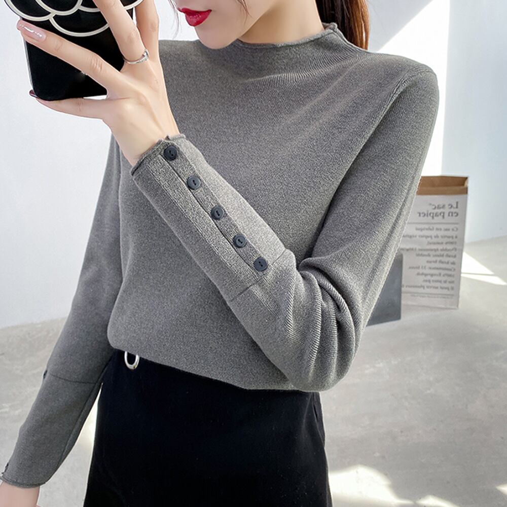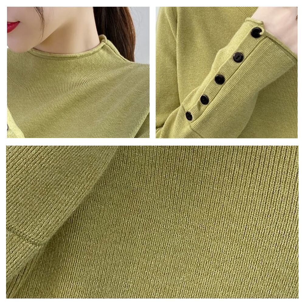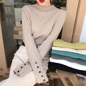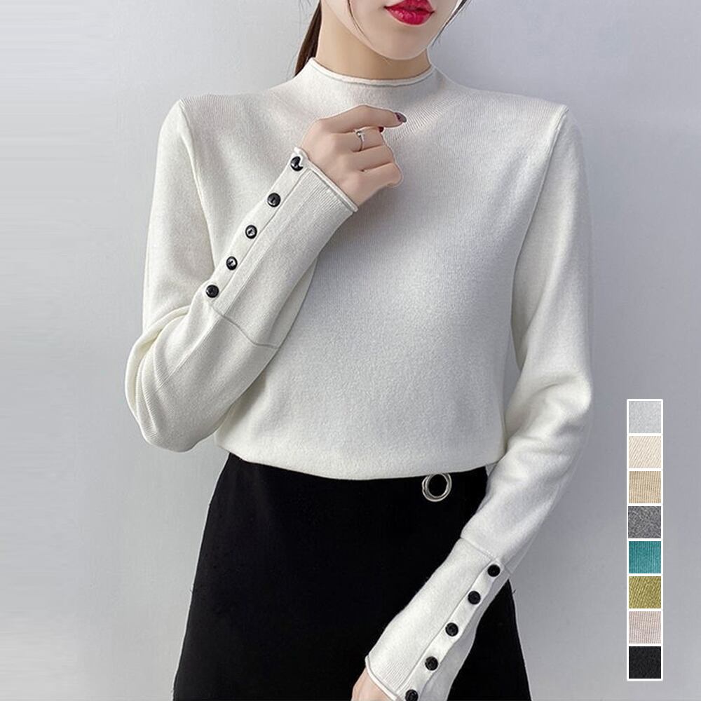ニットセーター レディース トップス 無地 プルオーバー 飾りボタン ボトルネック インナー カットソー
