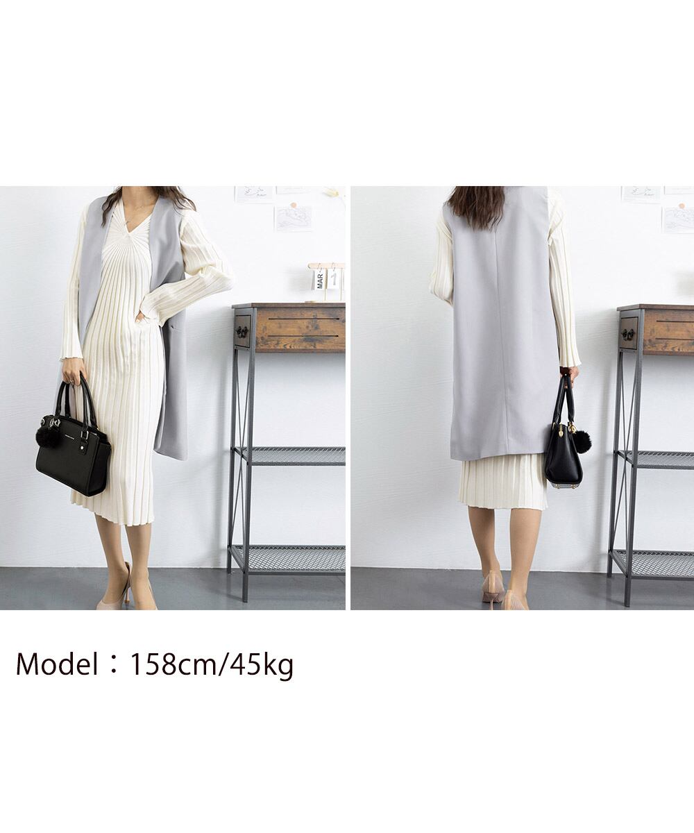 アウターを羽織ってももたつかないスッキリとした細身のシルエット、1枚でもボディラインをキレイに見せてくれます
