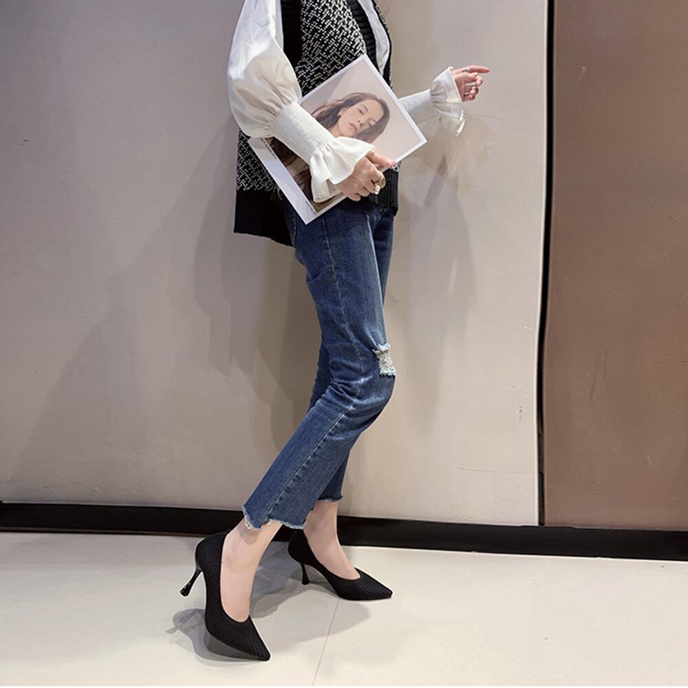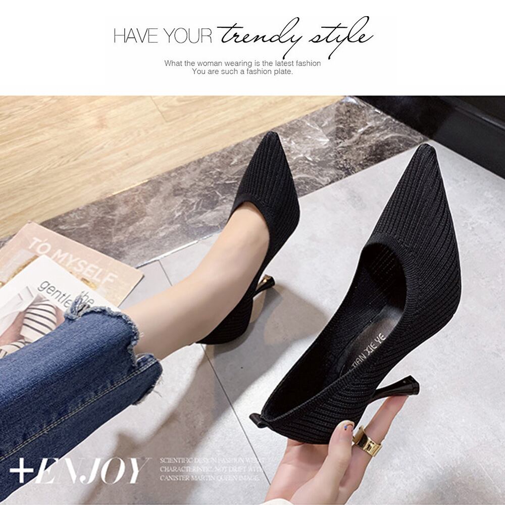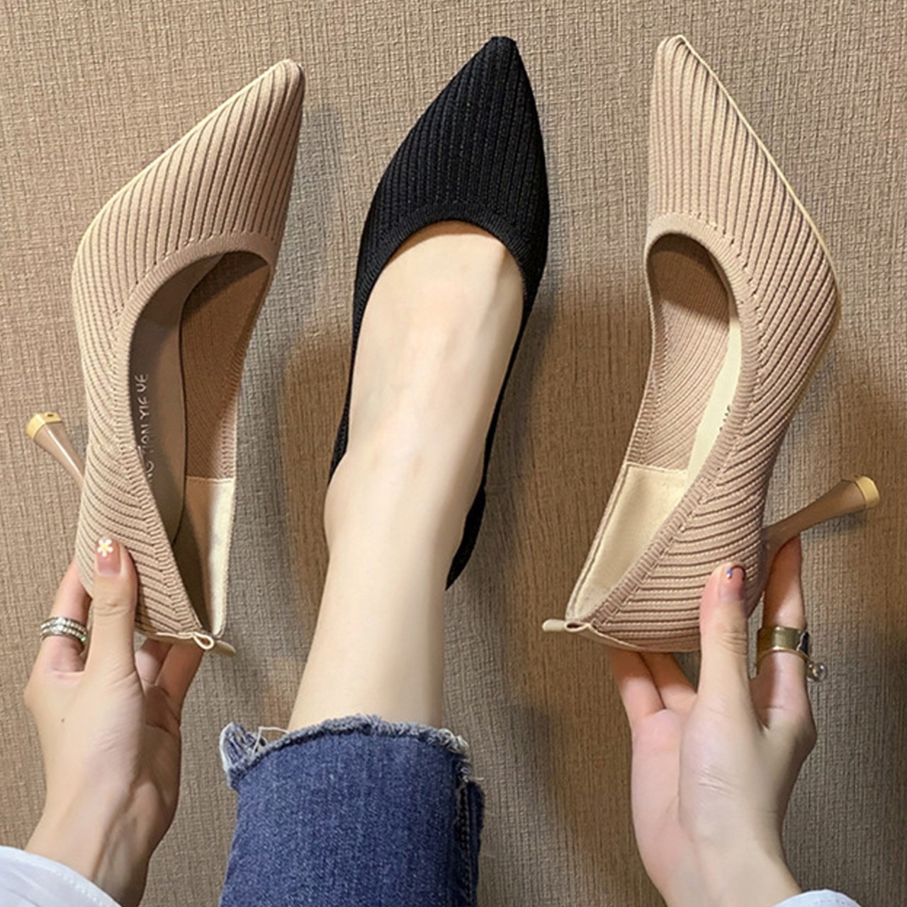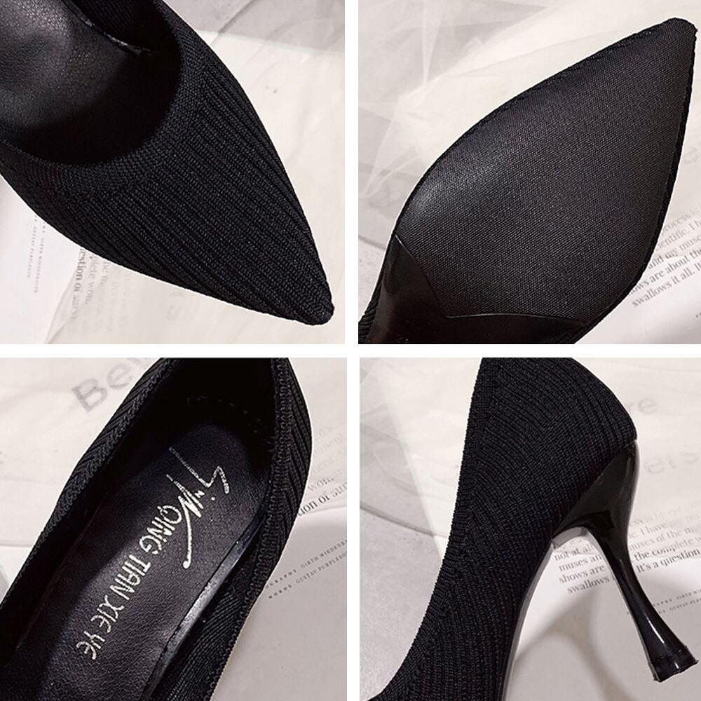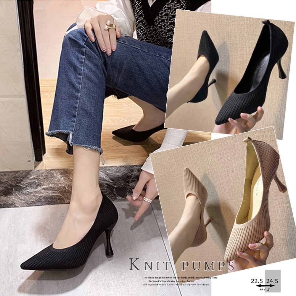 ハイヒール パンプス レディース 靴 ポインテッドトゥ フォーマルシューズ ピンヒール ニット パンプス 履きやすい