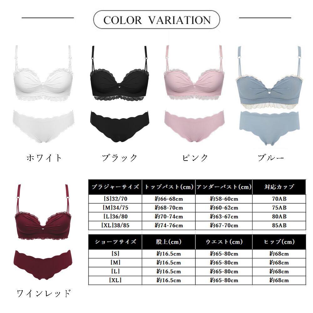 ブラジャーショーツセット レディース レース付き ノンワイヤー 下着