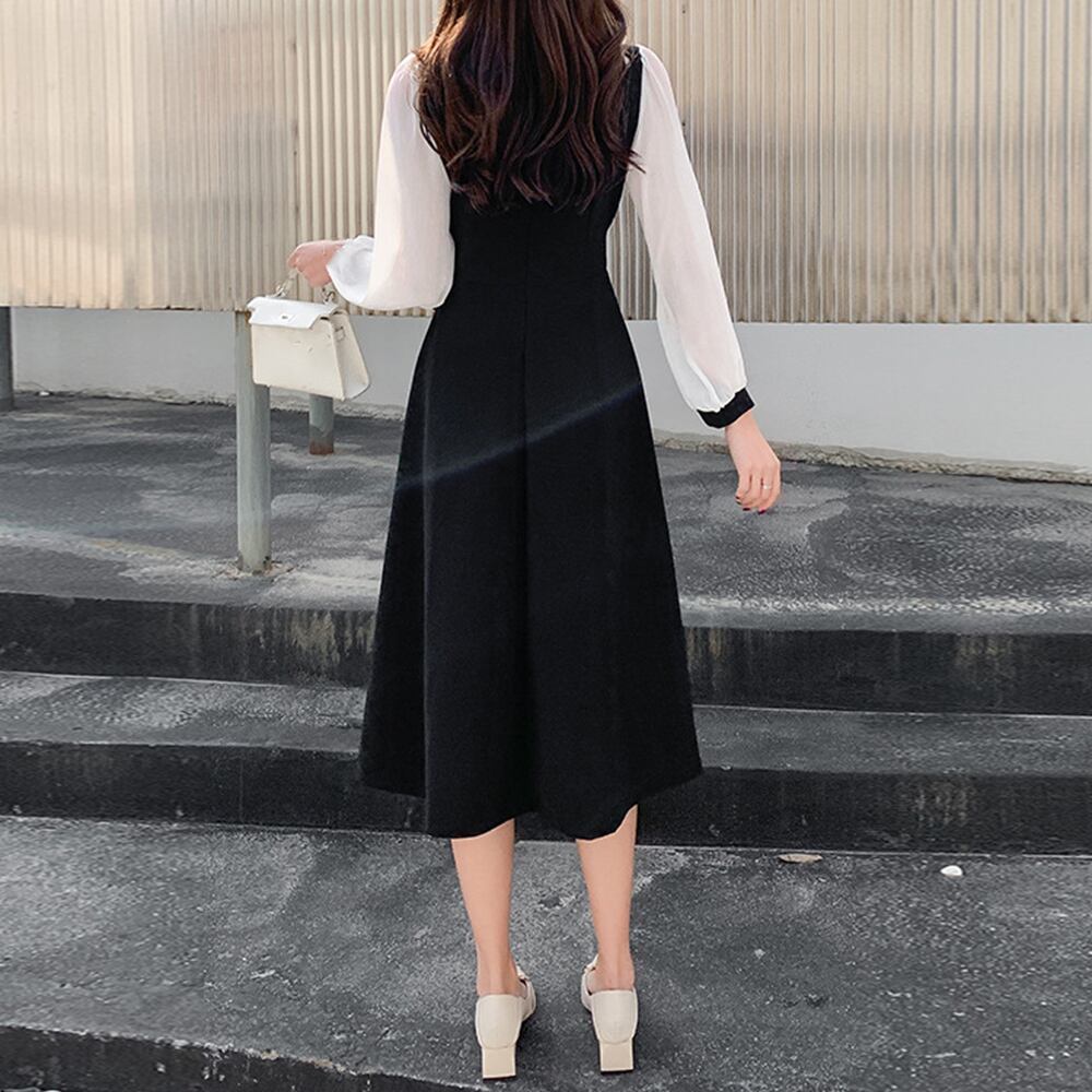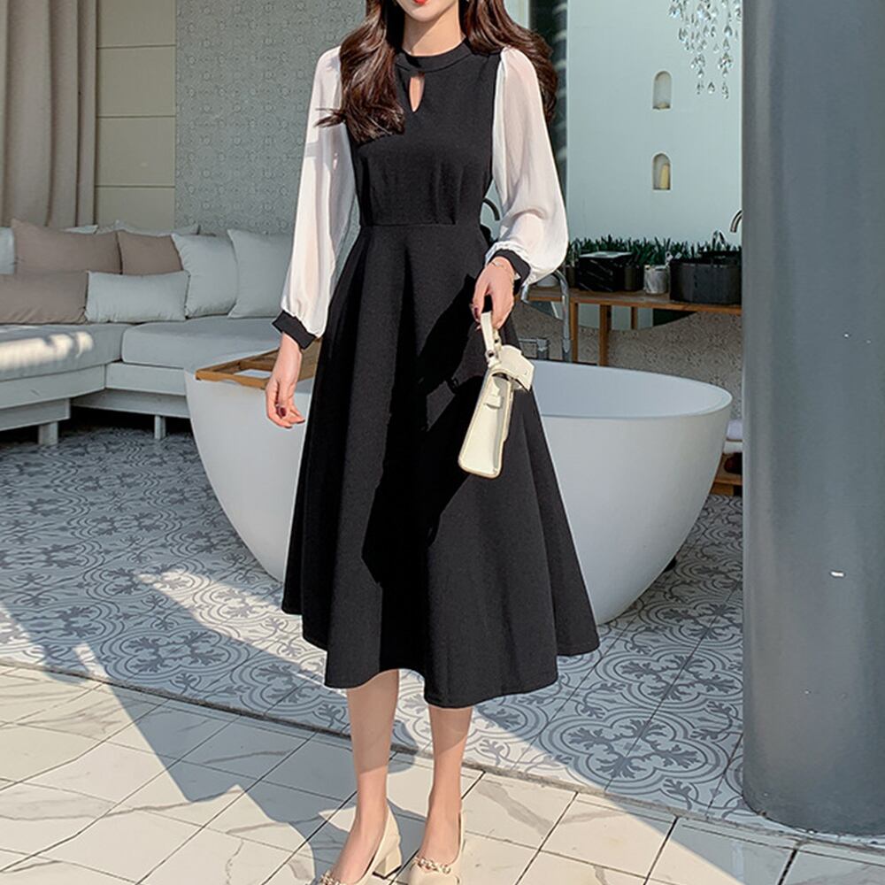 シフォンスリーブワンピース レトロ風 Aラインワンピース フォーマル 通勤OL 長袖ワンピース 春新作結婚式ドレス 韓国ファッション