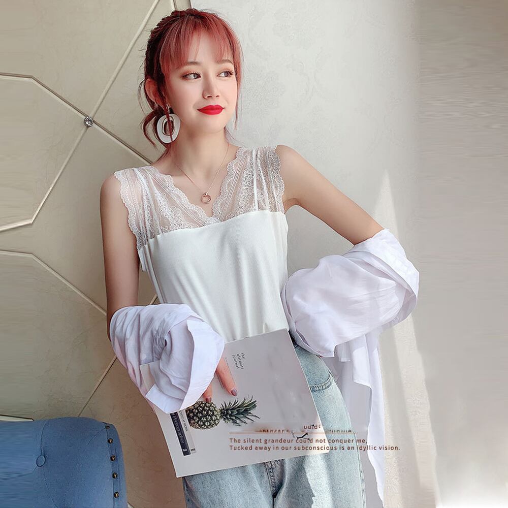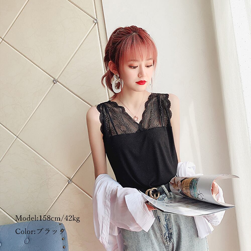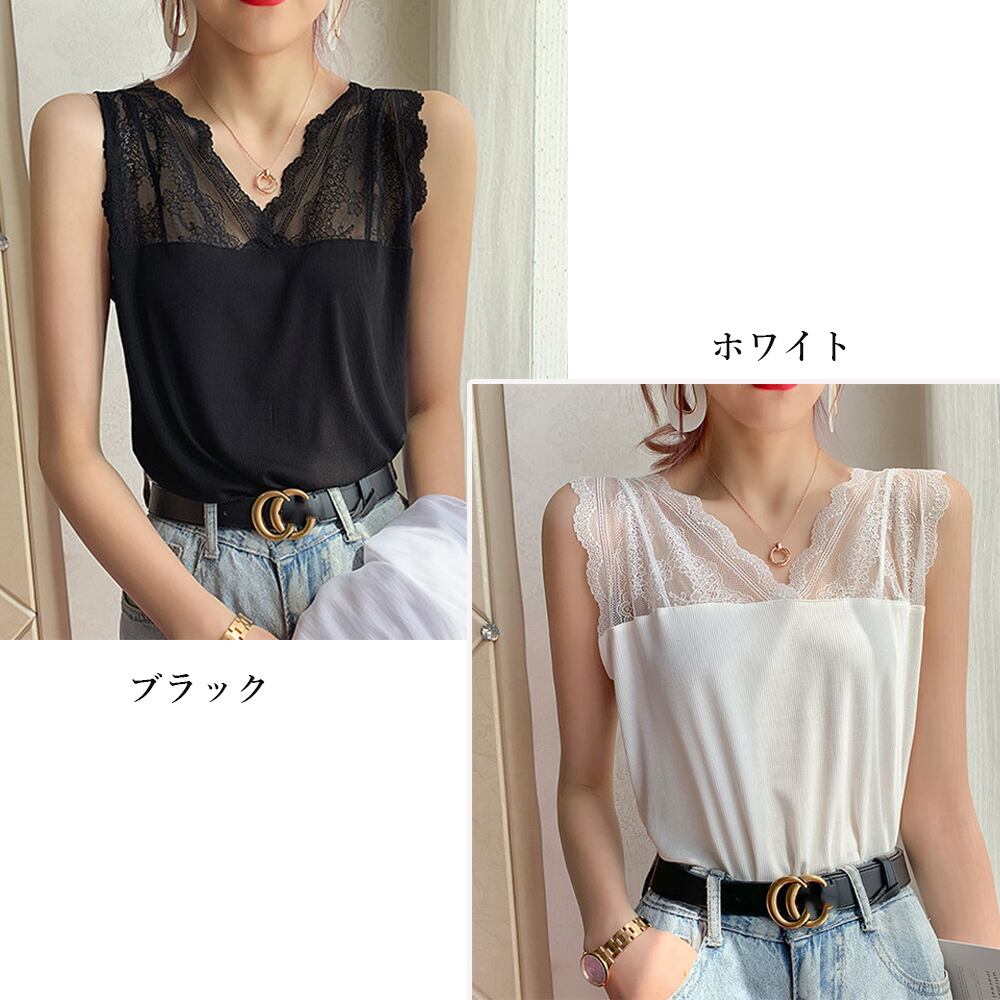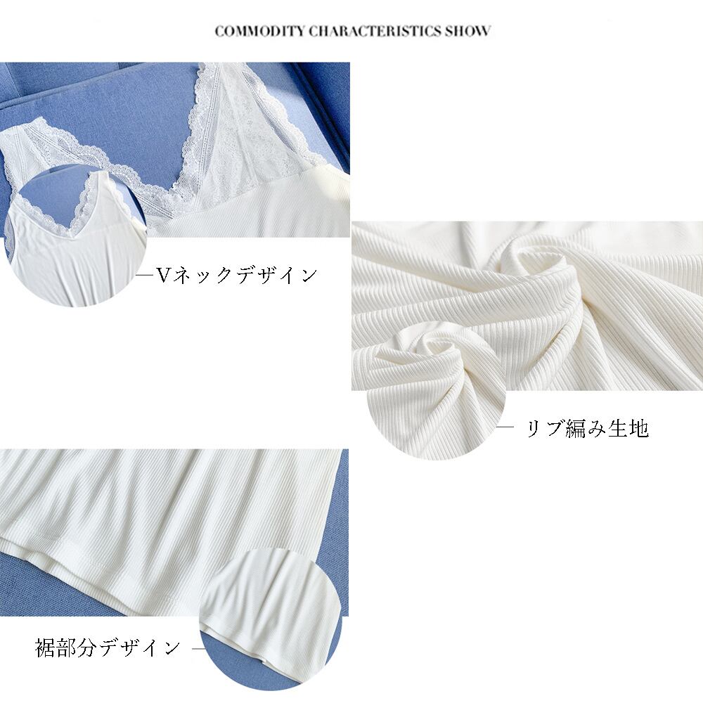 スカラップレース キャミソール 肌着 レイヤード 透け感 きれいめ ノースリーブ Vネック トップス 無地 タンクトップ 重ね着 シンプル