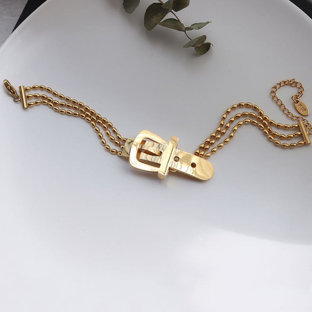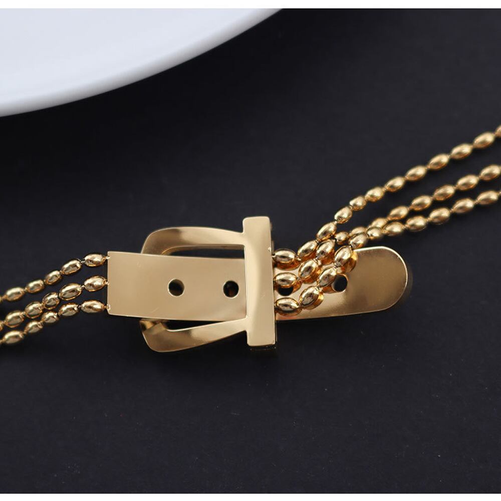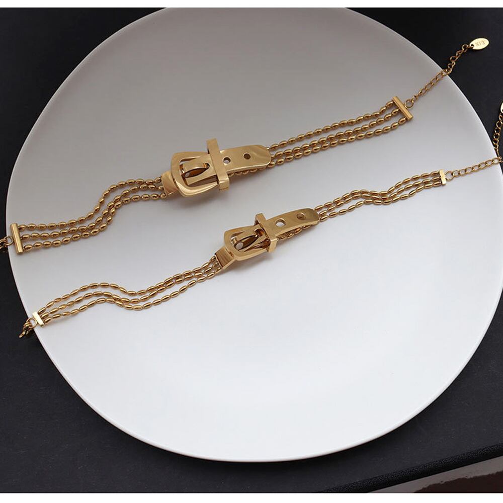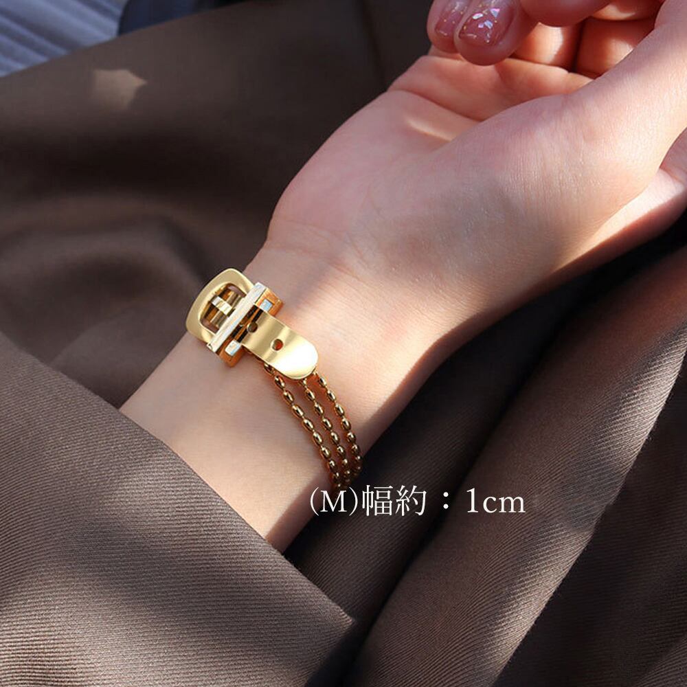 チェーンブレスレット ベルトデザイン 重ね付け ギフト 艶感ゴールド ブレスレット 大人 プレゼント お洒落 バングル お揃い