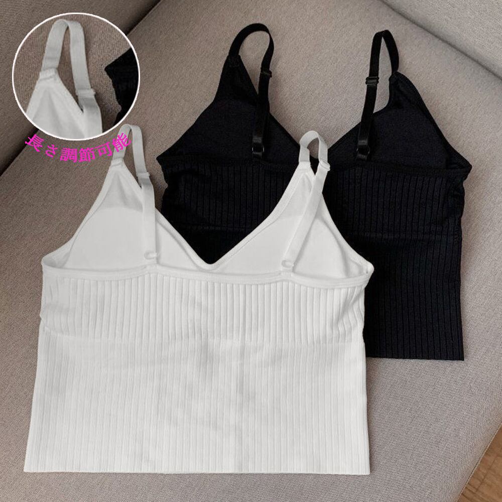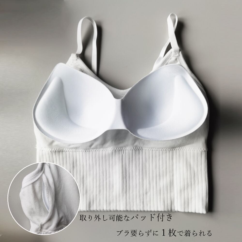 リブニット トップス 肌着 パッド付き ショート丈 へそ出し レイヤード ストレッチ 無地 キャミソール 重ね着 インナー シンプル 下着