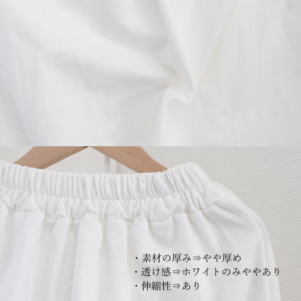 ウエストはゴム仕様になっているのでトップスをインしやすく、楽に着用していただけます。