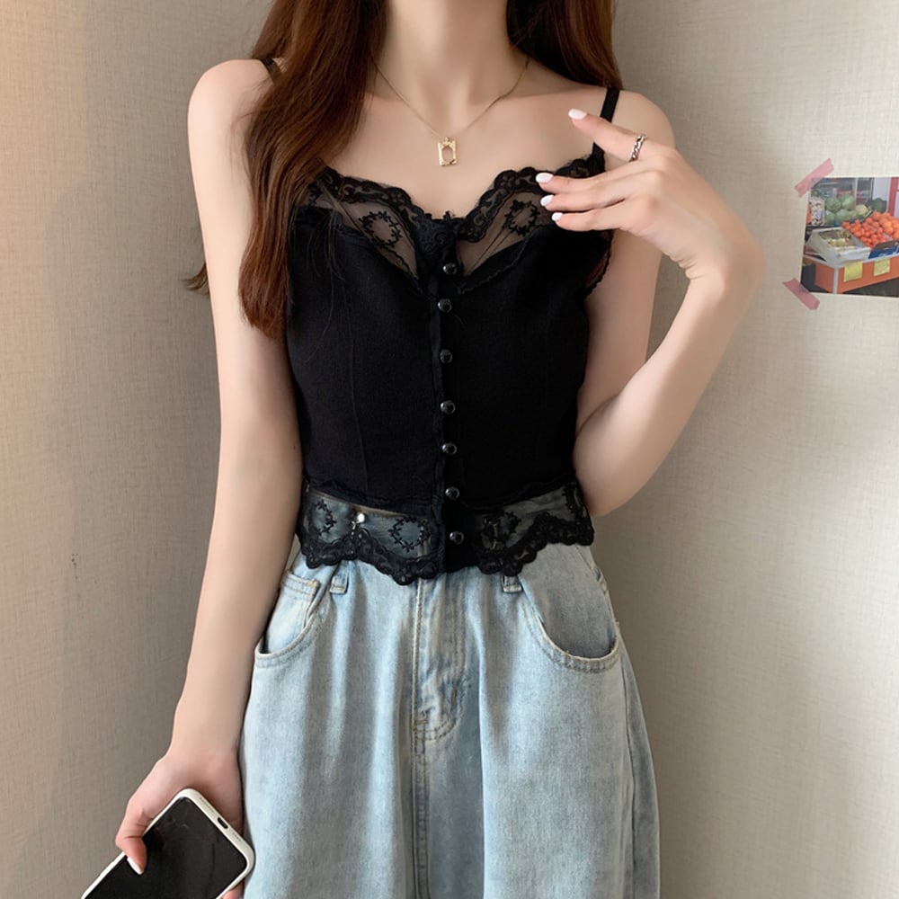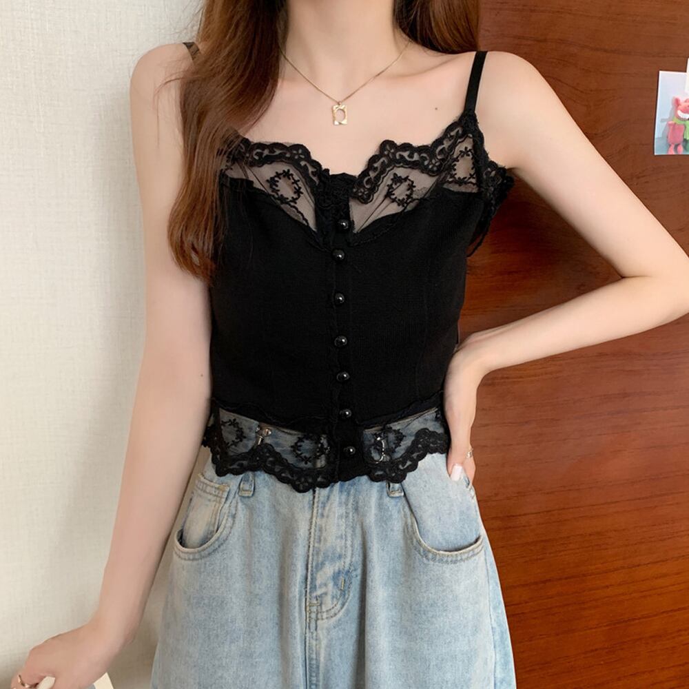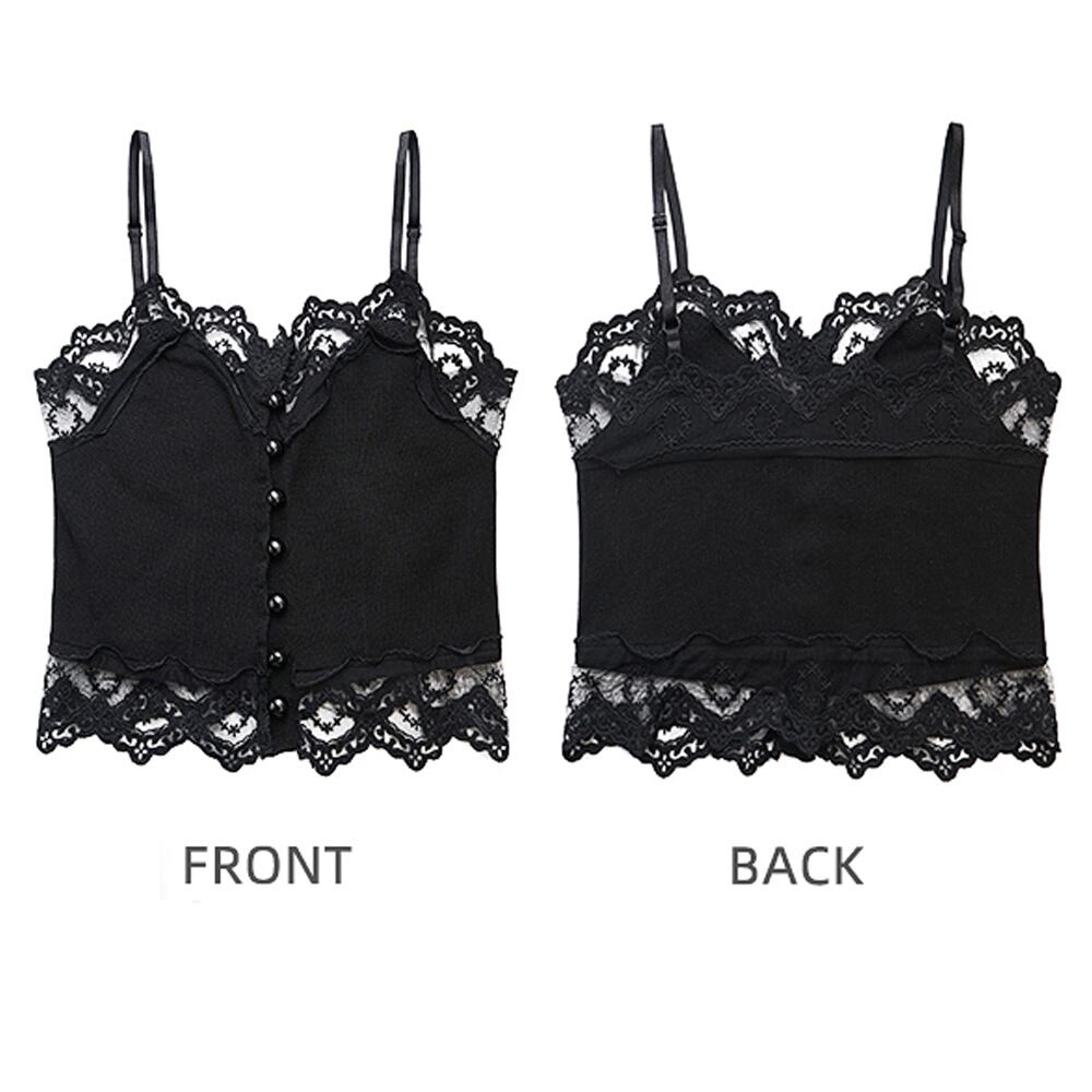 キャミソール トップス ショート丈 インナー ボダン レース 大人可愛い 肌着