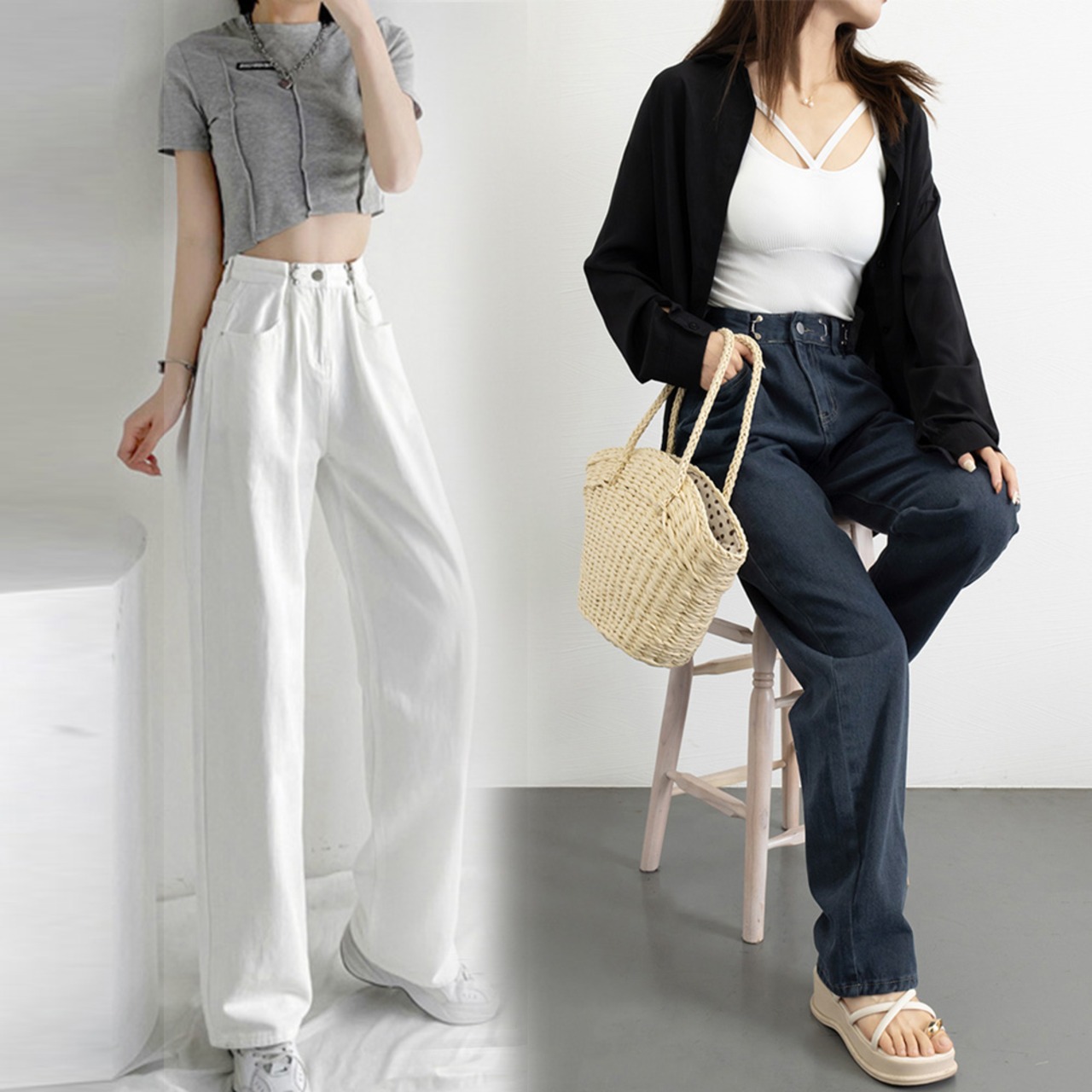 すらりとしたシルエットで脚を長く見せるハイウエストデニムワイドパンツ
