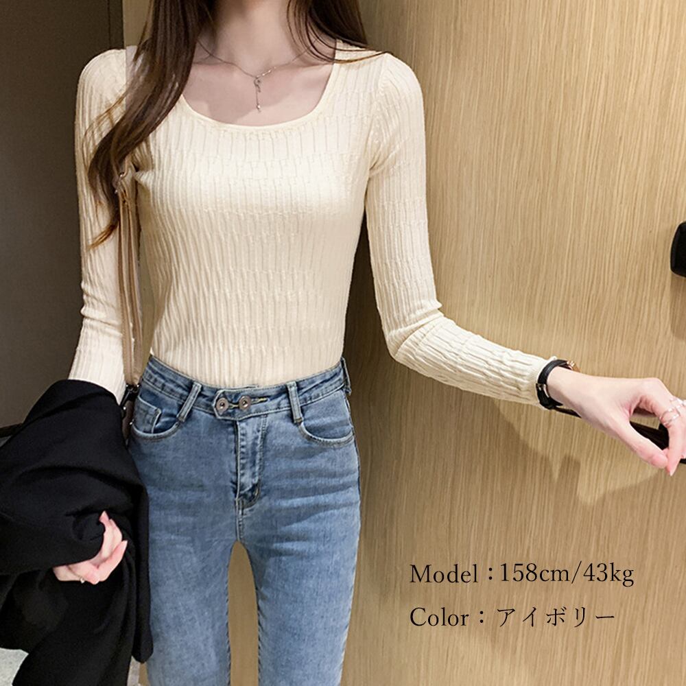 ニットトップス スクエアネックレディース