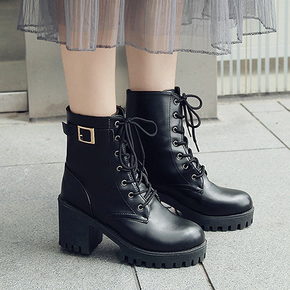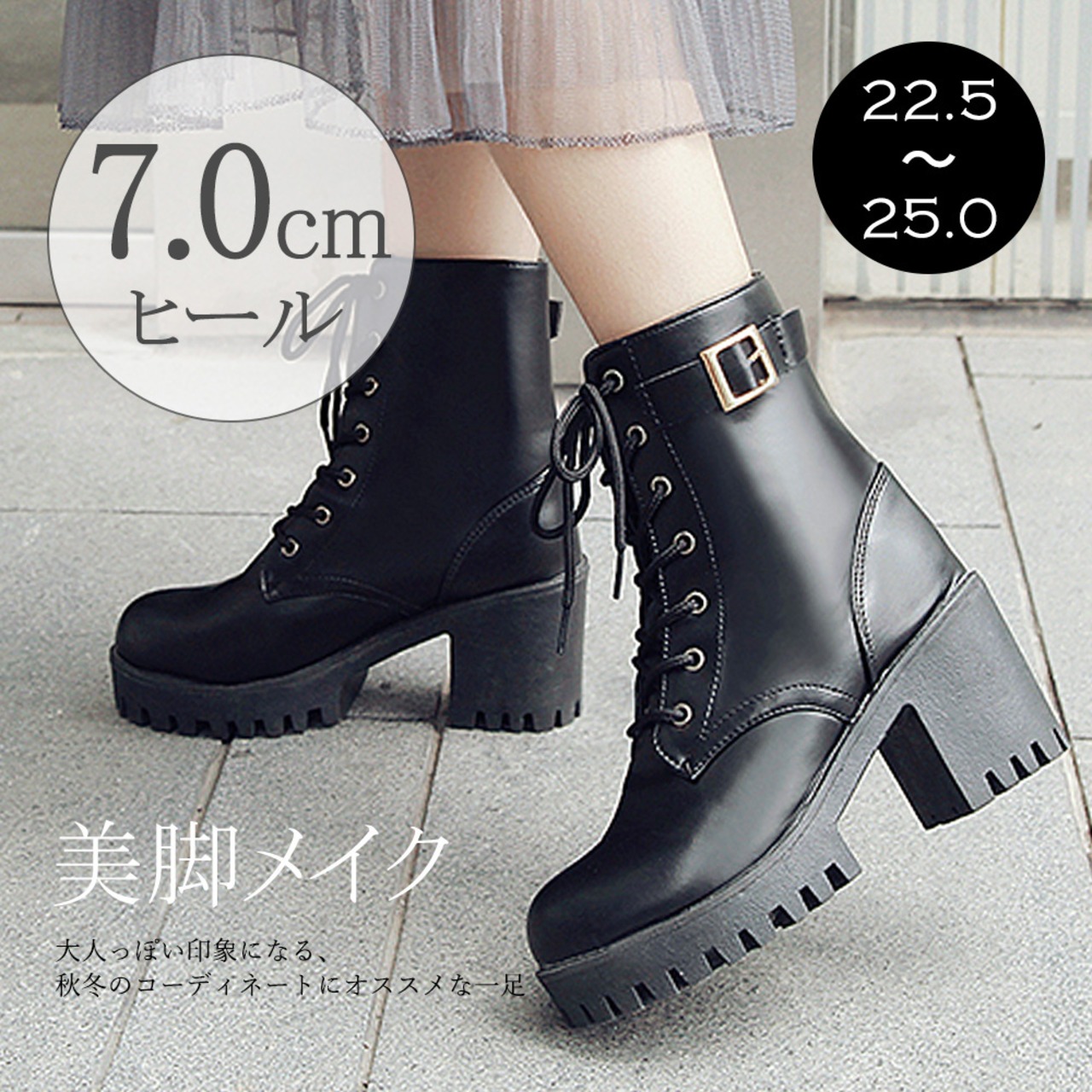レースアップブーツ 靴 ミドルブーツ ワークブーツ 通勤 OL 秋冬 編み上げ 美脚 歩きやすい