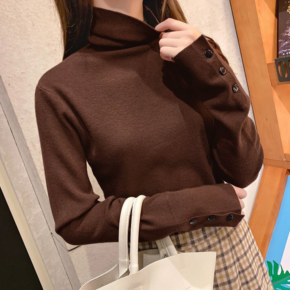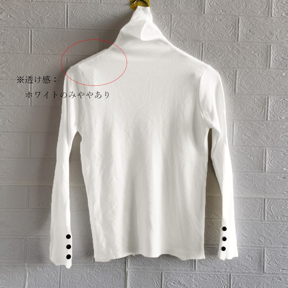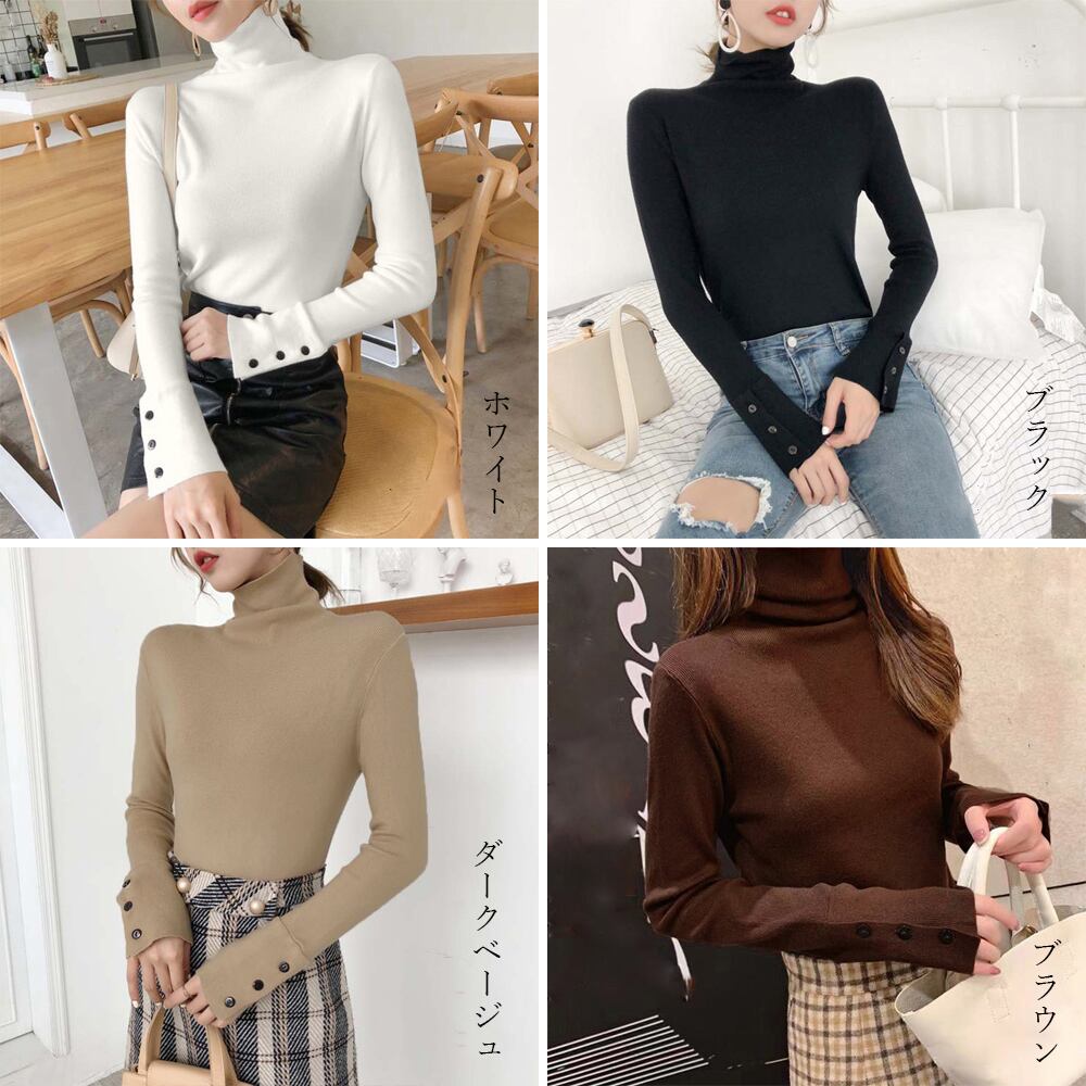 ニットソー 着やせ ニットインナー タートルネック 袖ボタン 長袖ニット 無地 シンプル タイトトップス