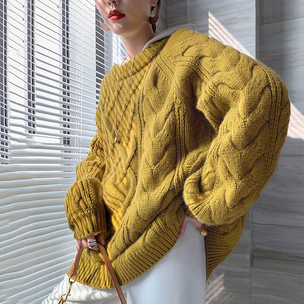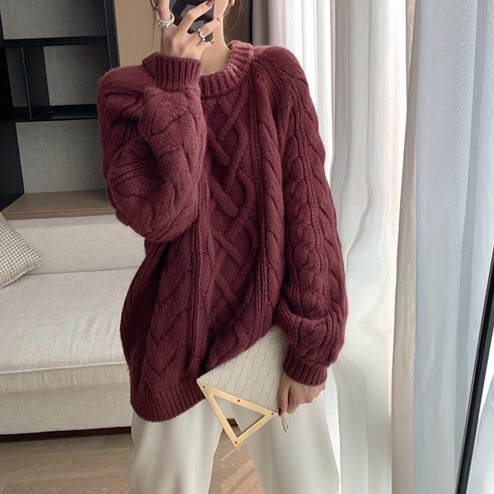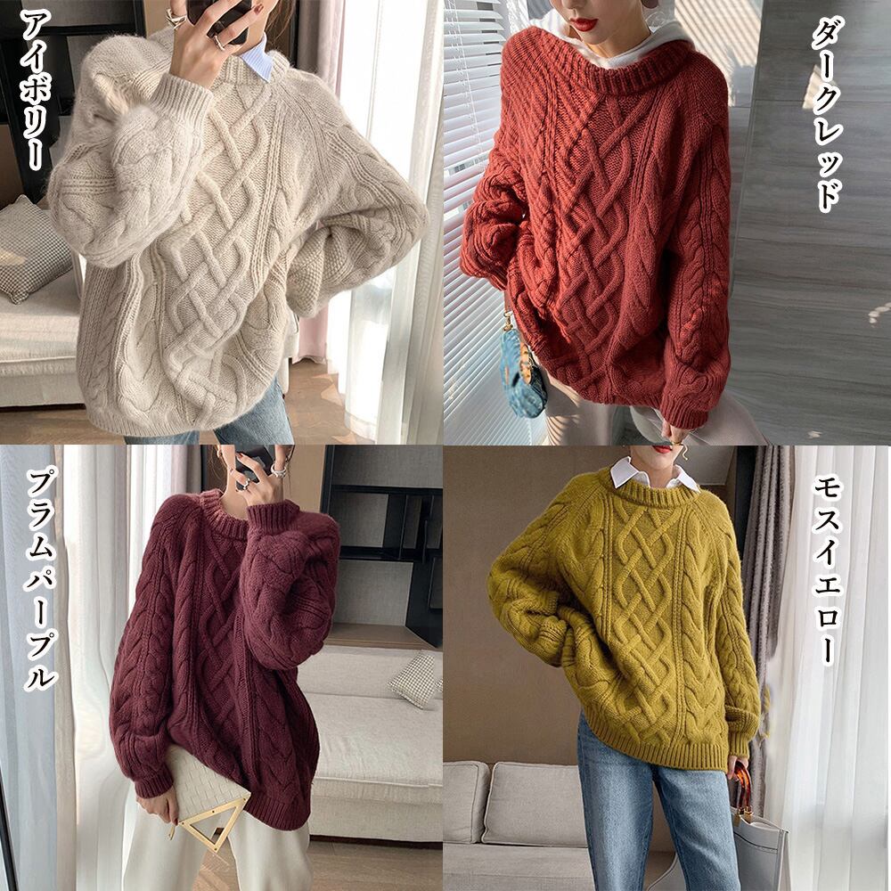 オルチャントップス ニット 体型カバー ケーブルセーター