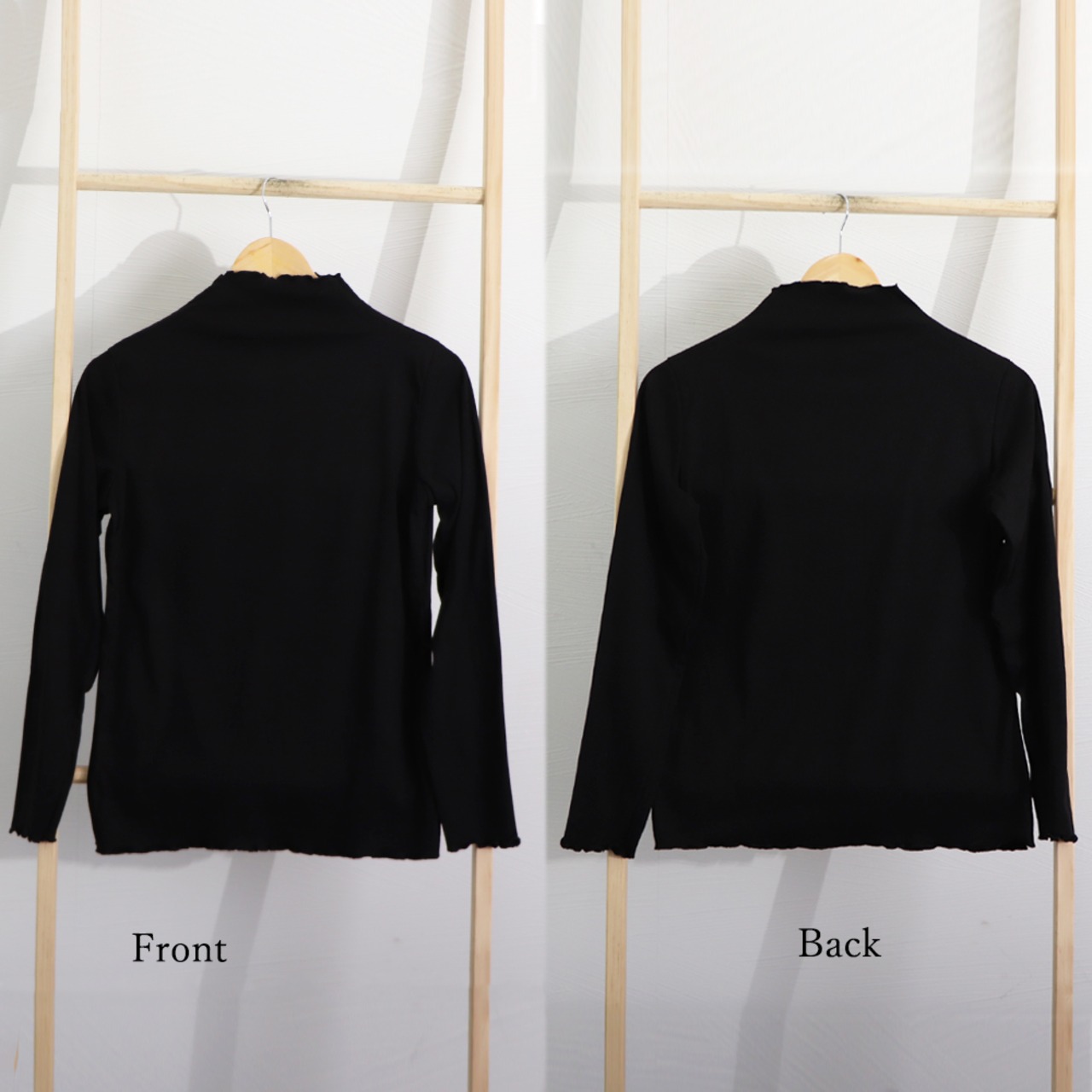 首元と袖口のフリルがアクセントになって可愛い長袖ハイネックカットソー