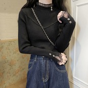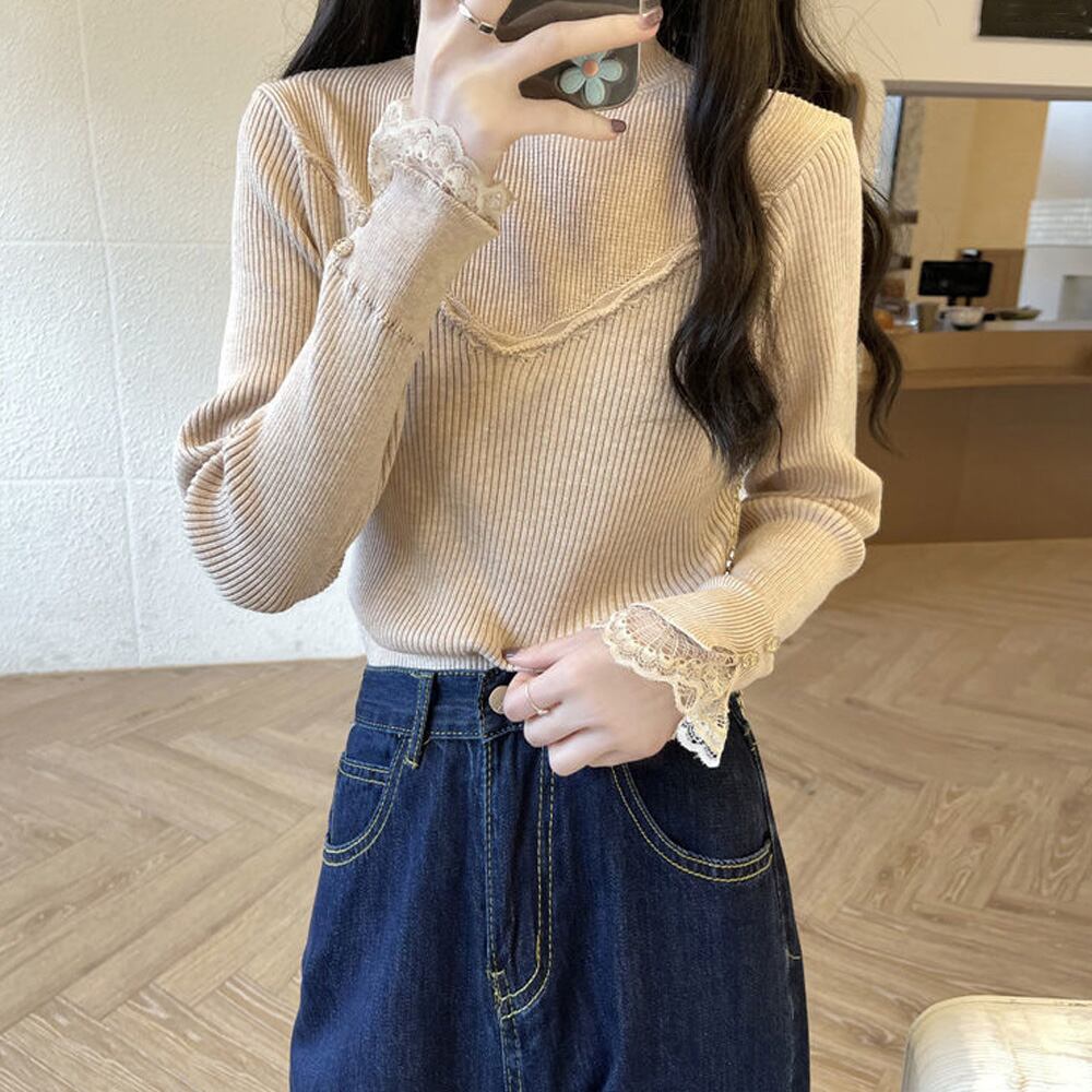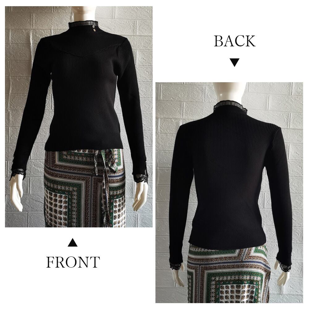 リブニット レディース レース ニットセーター インナー 長袖 ニットウェア ニットソー