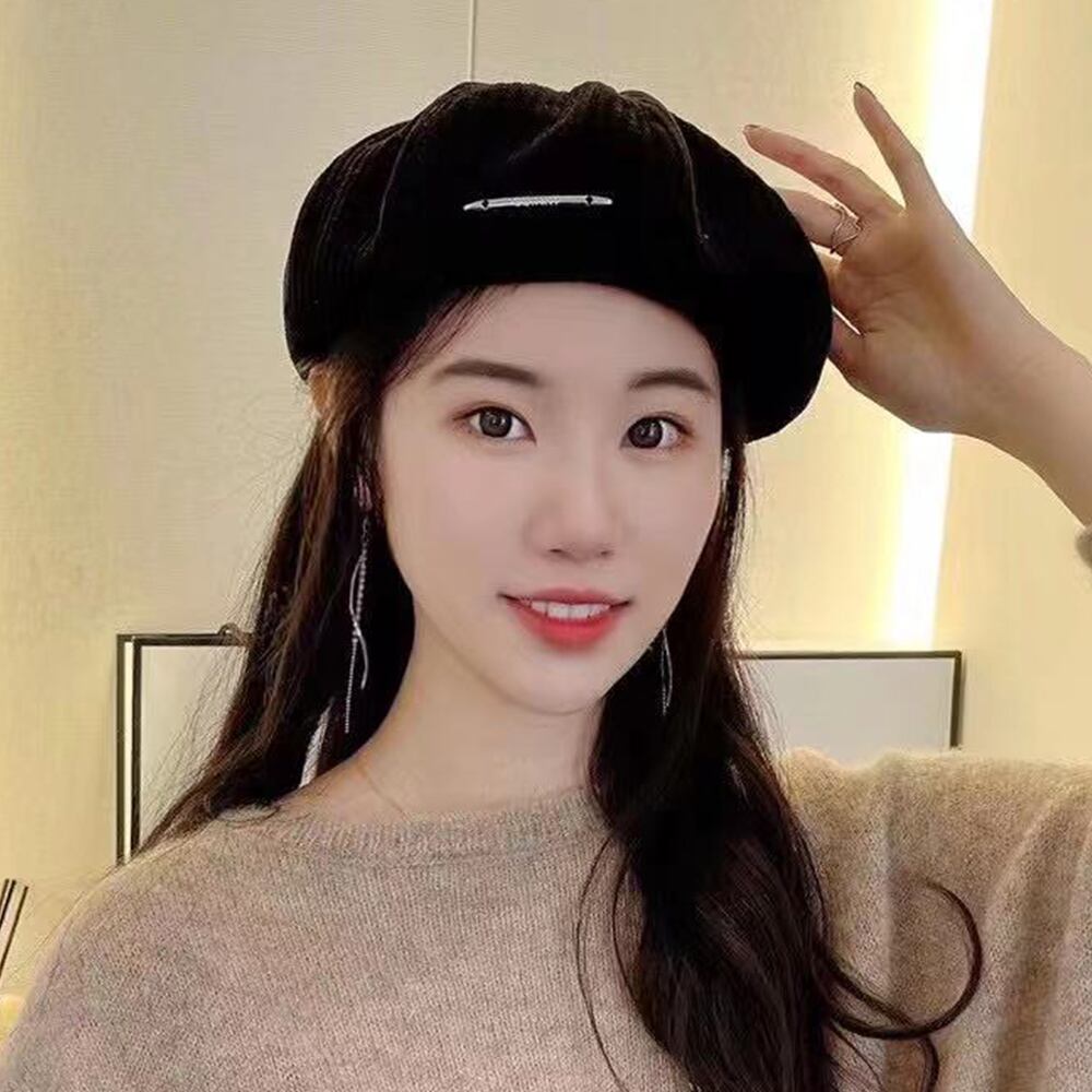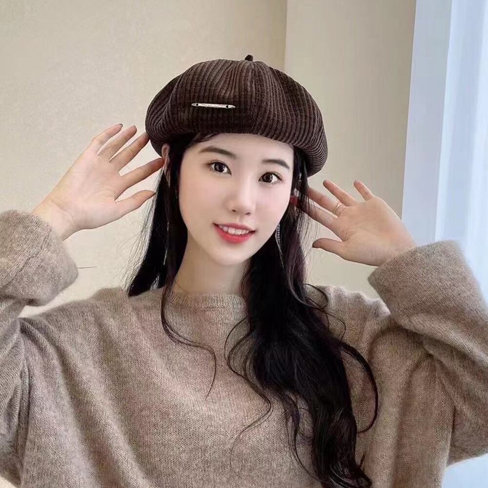 ふっくらと丸みのあるフォルム、コーデュロイ素材で仕上げたかぼちゃベレー帽