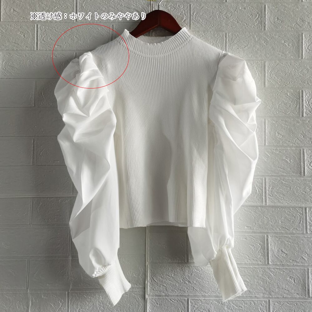 ニットソー レディース ボリューム袖切り替えニット 異素材 トップス お洒落 長袖