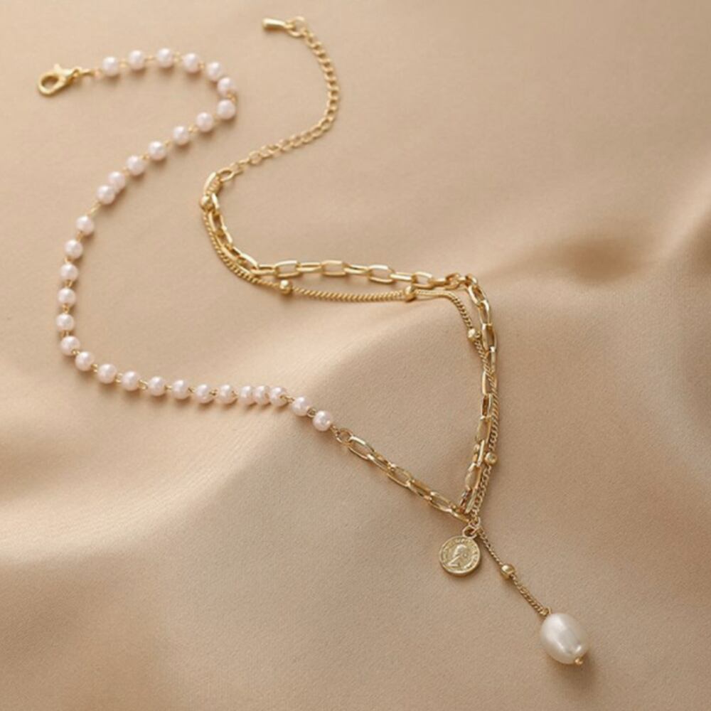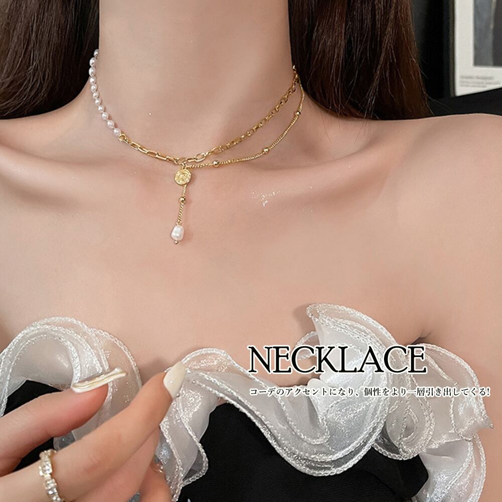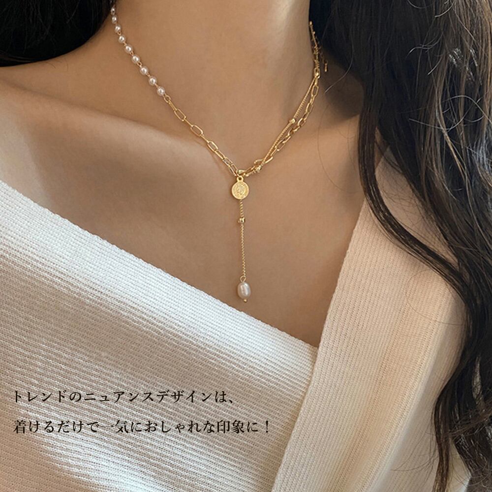 チェーンパールネックレス レディース 韓国風 切り替え アクセサリー 大人カジュアル 首飾り 韓流 可愛い ジュエリー
