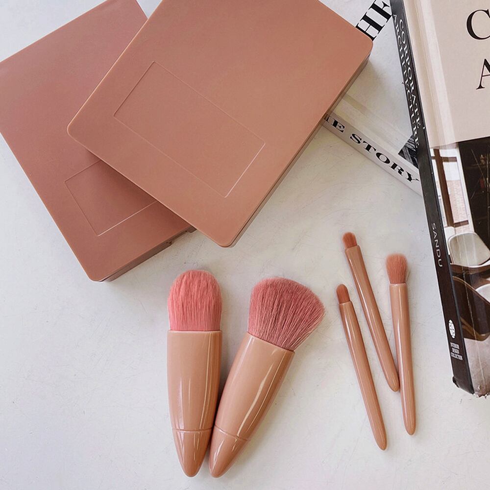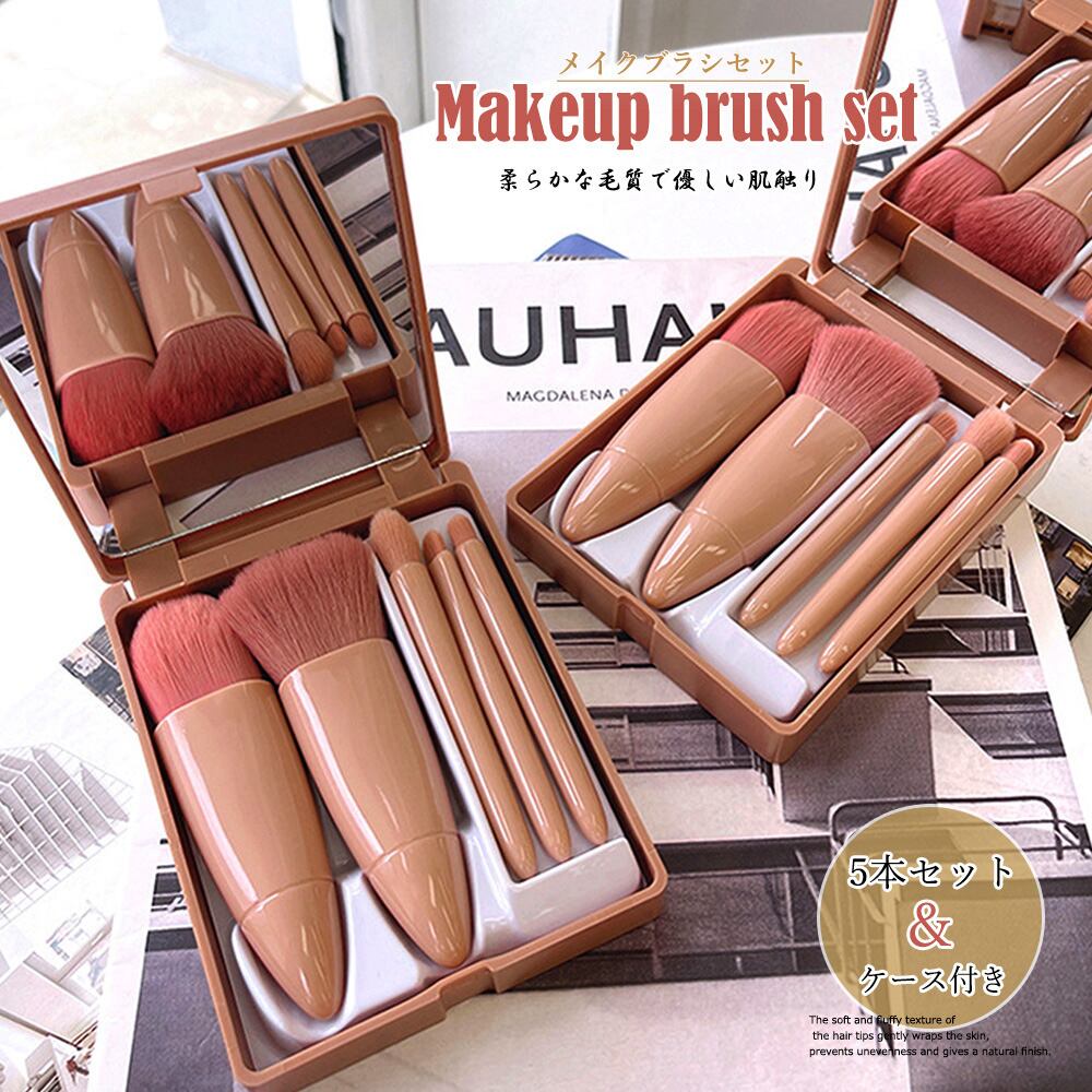 持ち運び可能、いつでもどこでも簡単に化粧直しができるメイクブラシ5本セット