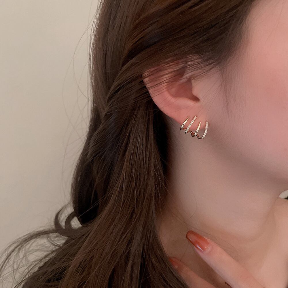 ドラゴンの爪をモチーフにするアーチ型合金にビジューをちりばめたスタッドピアス