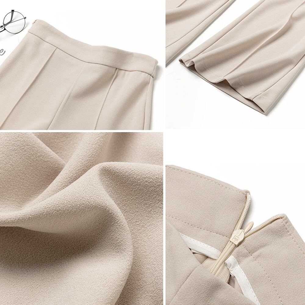 センターシームデザインで縦ラインを強調し、美脚をメイクする上品なロングパンツ