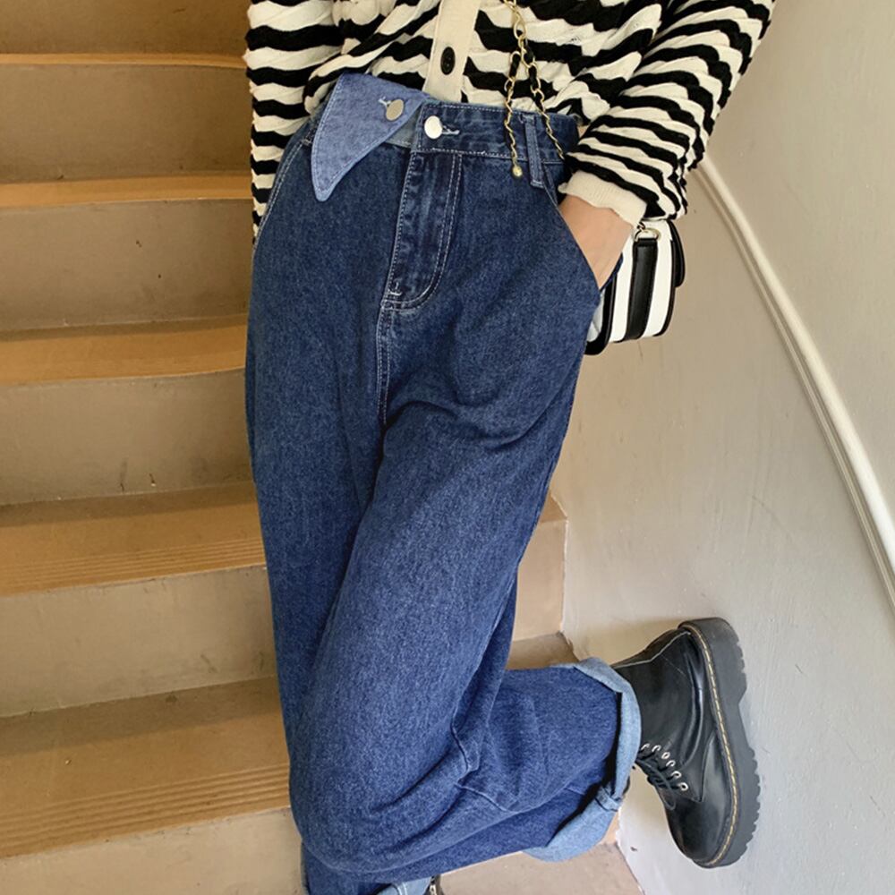 レディース オシャレ カジュアル ストレート デニムパンツ 脚長 ゆったり ロングパンツ 着やせ 美脚パンツ オルチャン