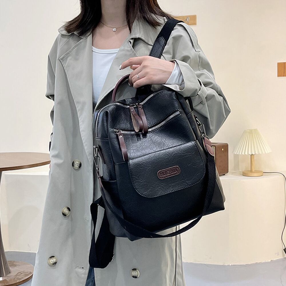 渋い光沢感のある牛シボ模様PU生地で仕上げたマットな質感のレトロチックなスクエアリュック